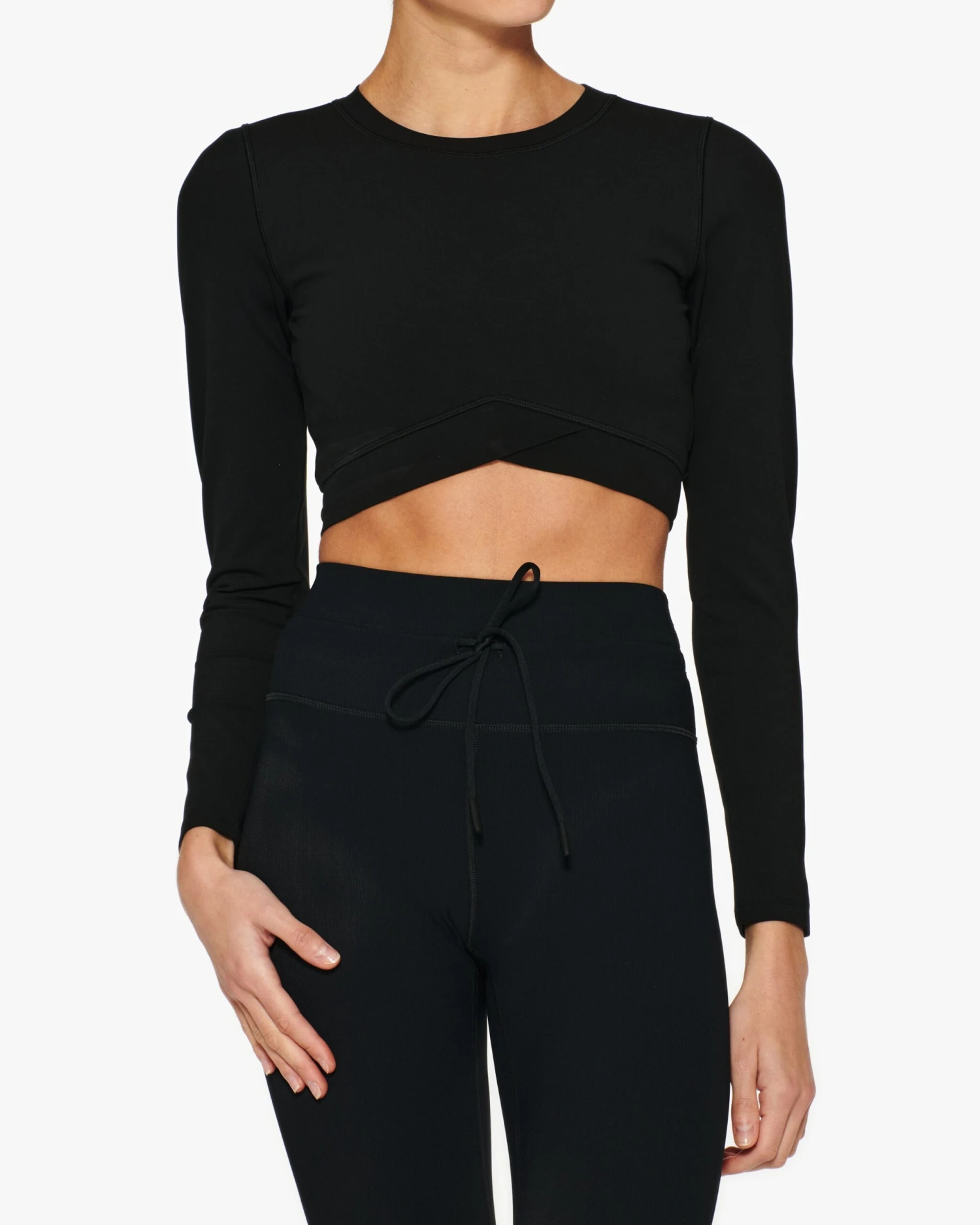 Cover up and still show some skin with this pullover cropped shirt. The Aim High Top comes with a V-front surplice detail and long sleeves, and will have you feeling comfortable in any climate.