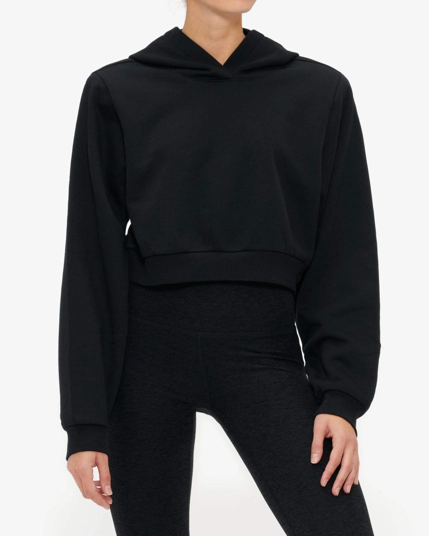 The Cropped Headliner Shoulder Pad Hoodie keeps things luxe even on the most casual days. Structured shoulder pads give this hoodie an elevated feel while ultra-cozy brushed fleece fabric keeps out the chill. Pair it with any legging or sweat pant for an epic, off-duty look.