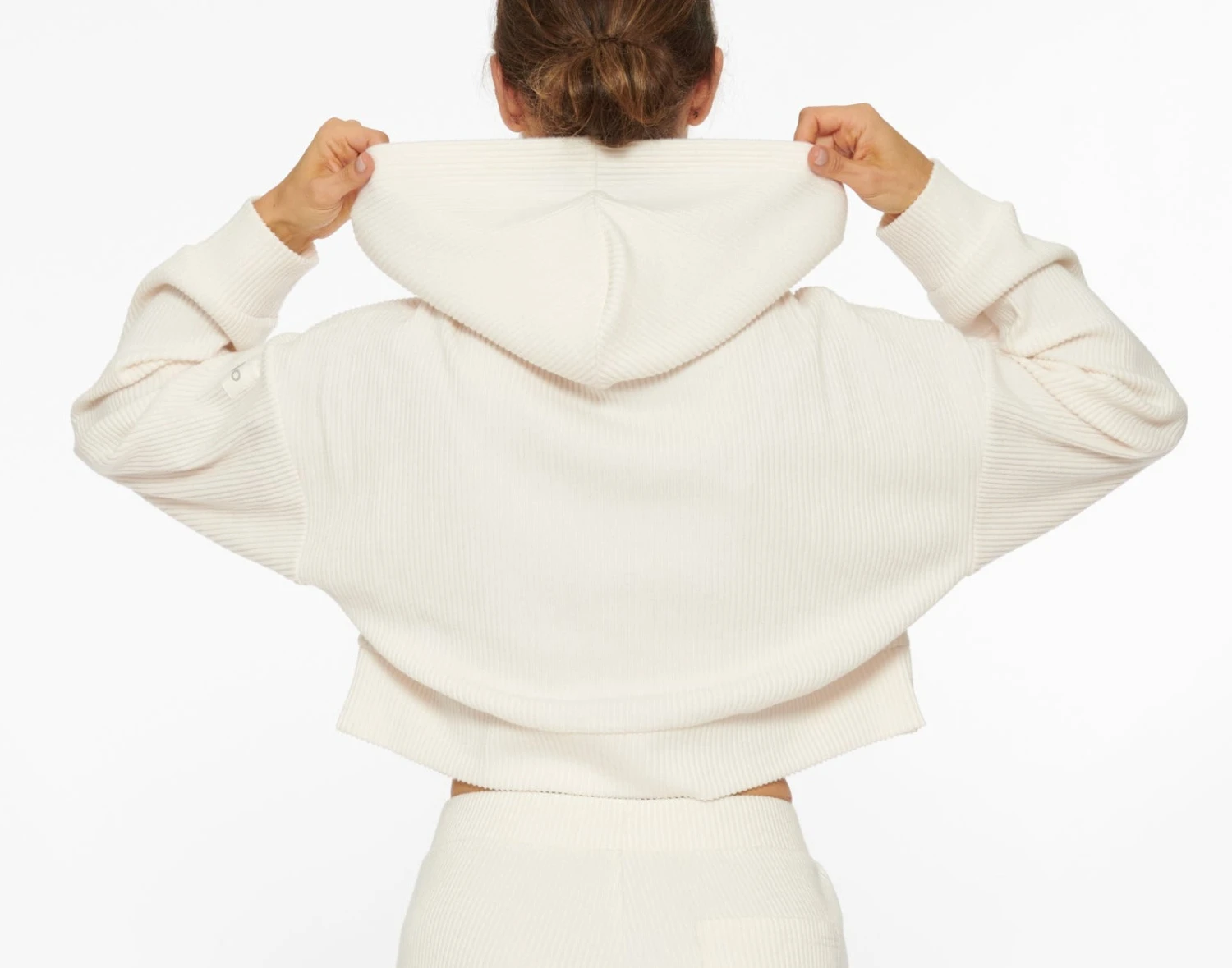 The Muse Hoodie is made with a soft ribbed knit and has a relaxed, cropped silhouette and slits at sides. This hoodie is perfect to go from studio to street to lounge.