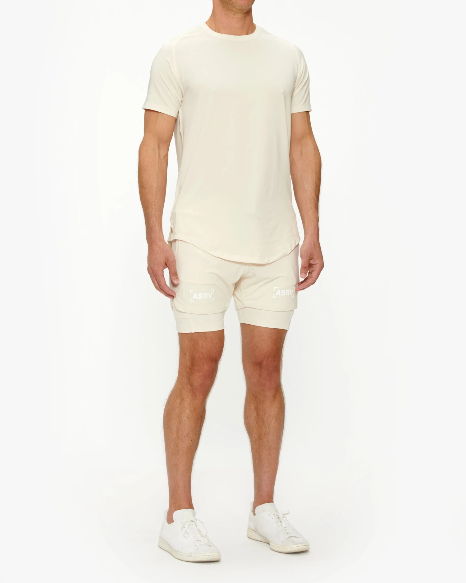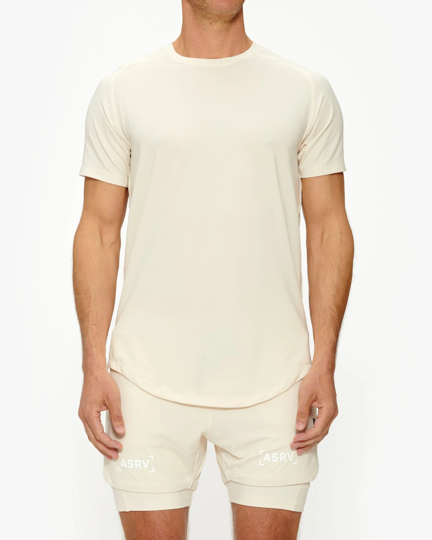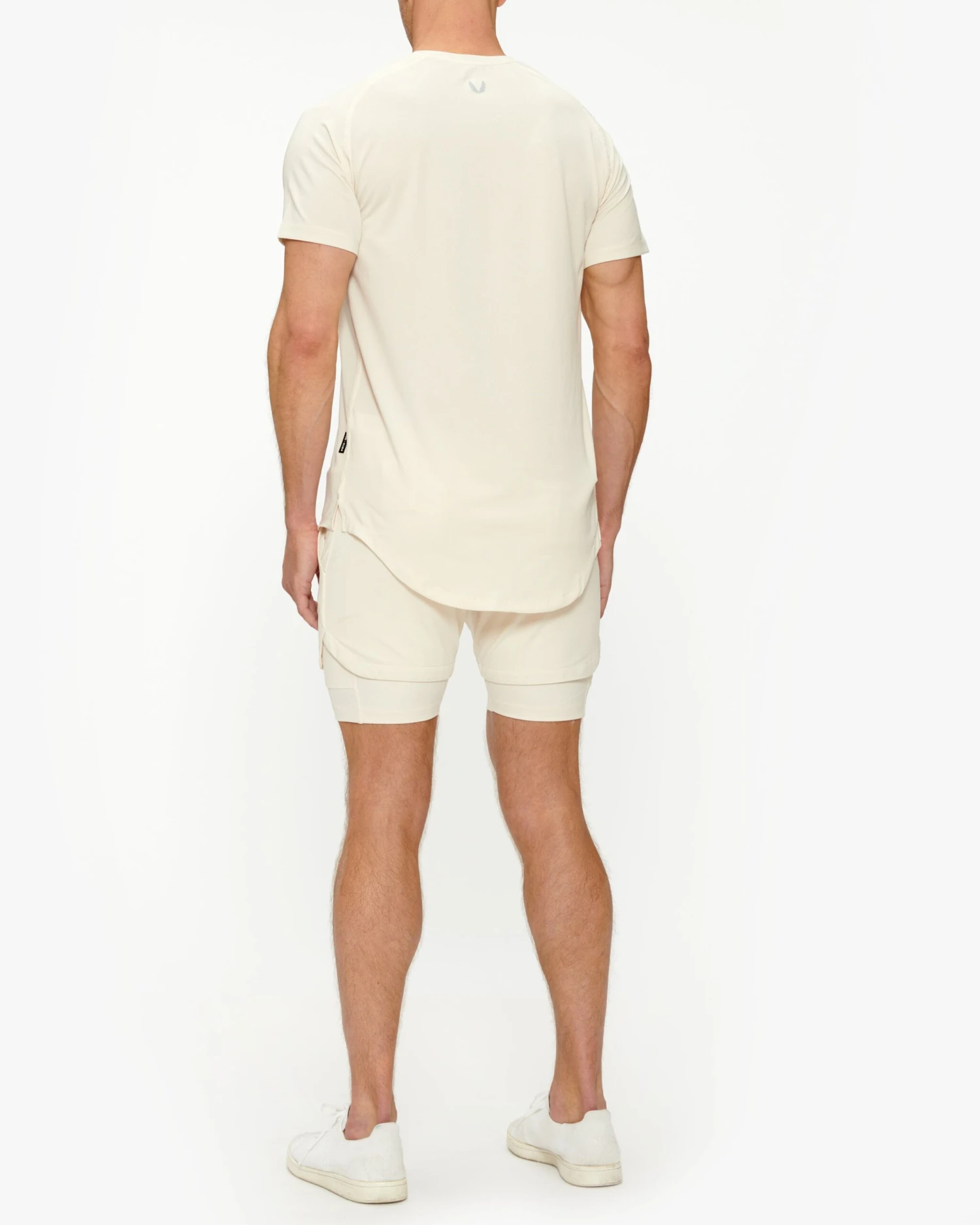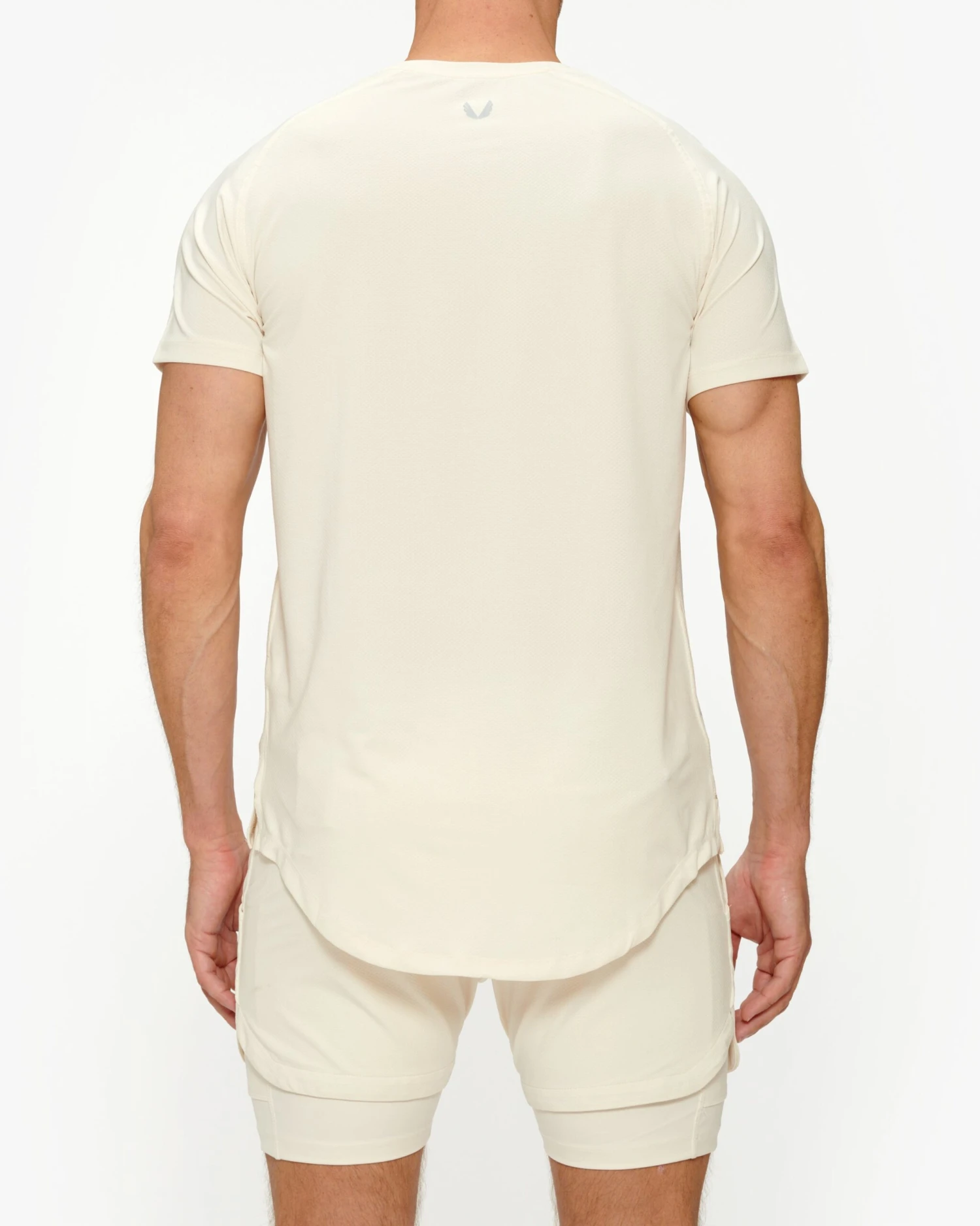 Lightweight performance tee constructed from Silver-Lite fabric, an ultra-light and soft mesh with a patented antibacterial treatment that breaks down odor-causing bacteria from sweat. Designed with a side split hem with reinforced tack seams and an extended scallop bottom hem to negate shirt ride up when stretching, jumping, and squatting.