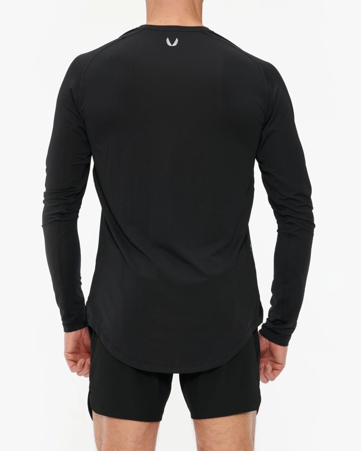 Lightweight, sweat-wicking performance long sleeve for training and high-intensity activities. Constructed from Silver-Lite, an ultra-light and soft mesh with a patented antibacterial treatment that breaks down odor-causing bacteria from sweat. Designed with an extended scallop hem to negate shirt ride up when stretching, jumping, and squatting.