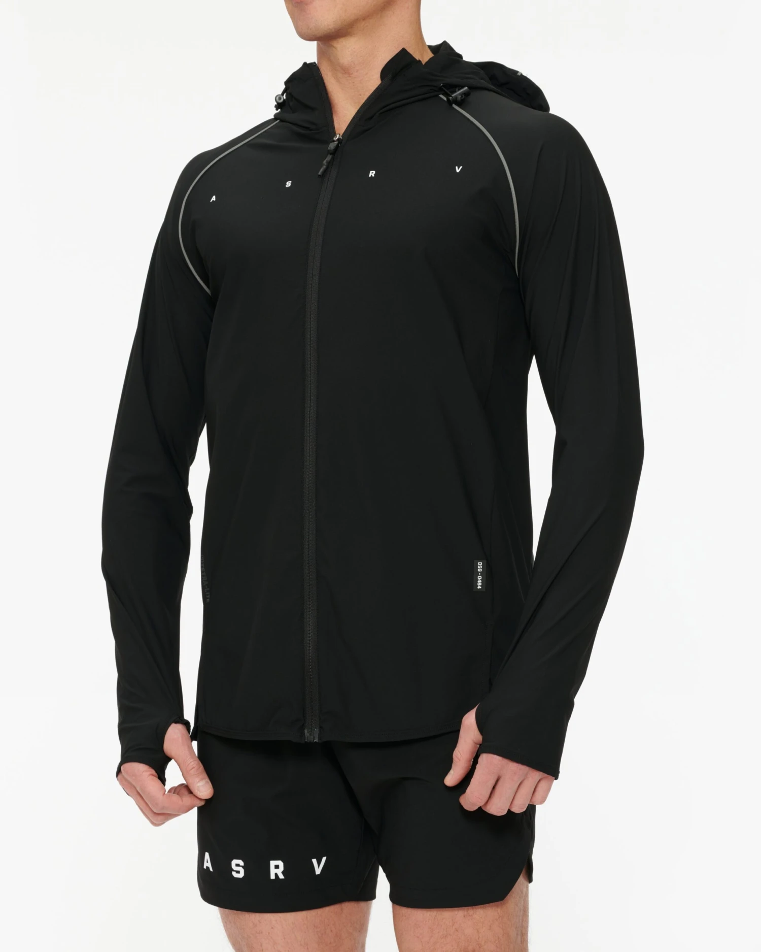 Full Zip Jacket constructed from ASRV’s TETRA-LITE® material, which is water-resistant yet incredibly lightweight to provide the perfect shell for high-intensity training in mild weather conditions. Designed with reinforced thumb slits on the sleeves and adjustable cinch cords on the hood for a secure fit while running. Complete with reflective logos and pipe seams for high visibility function early in the morning or late at night.
