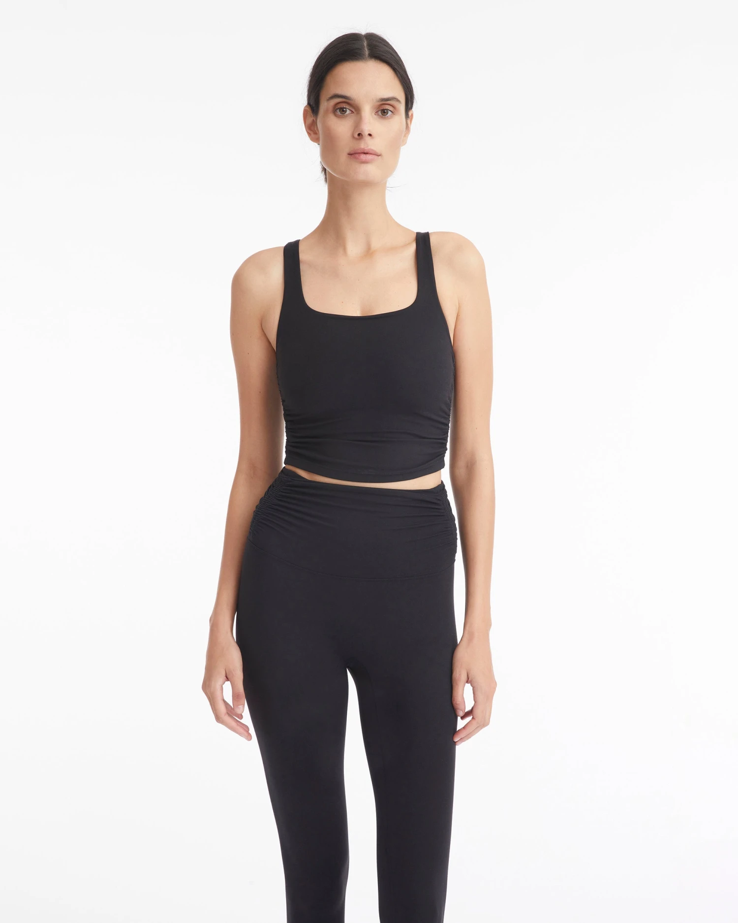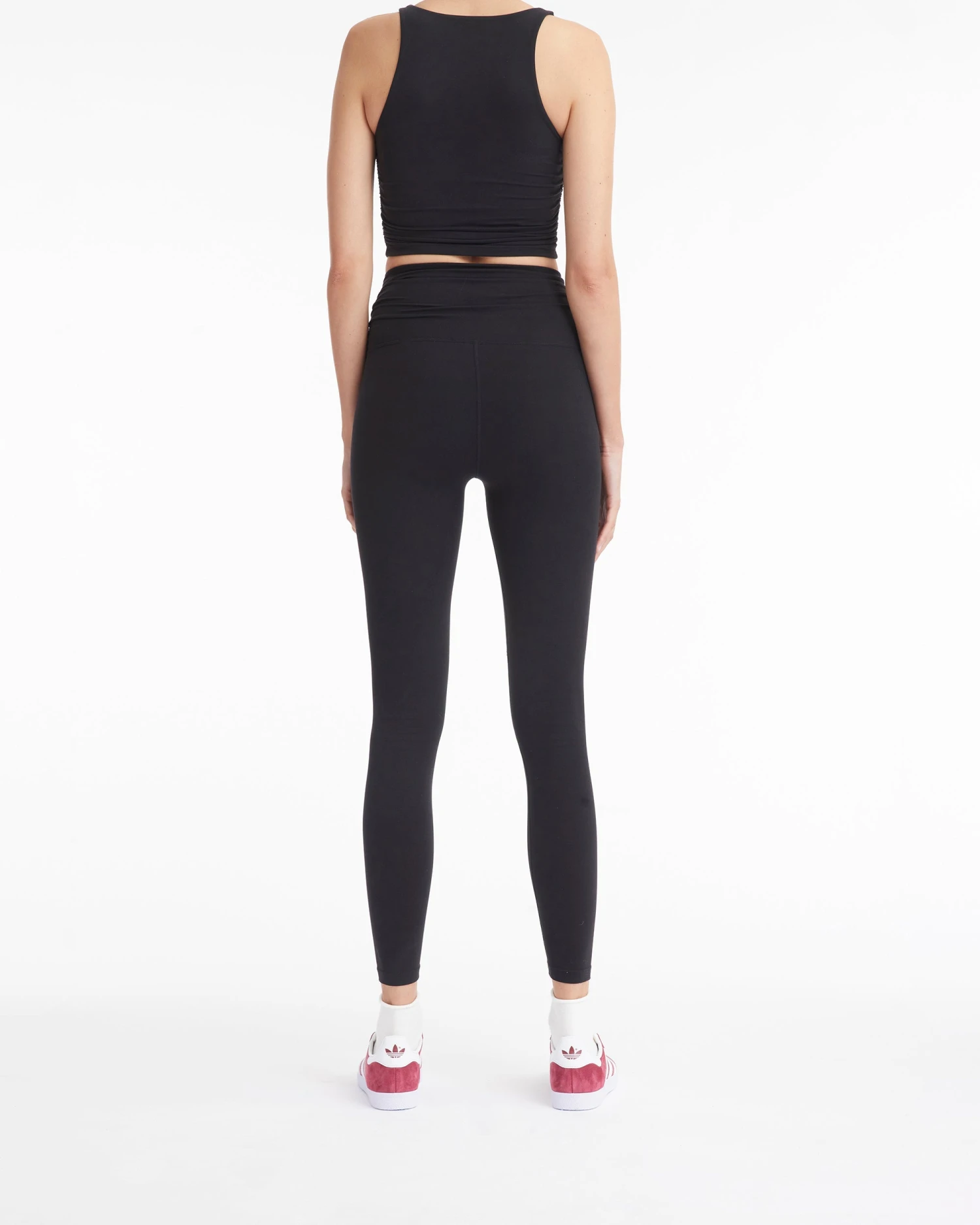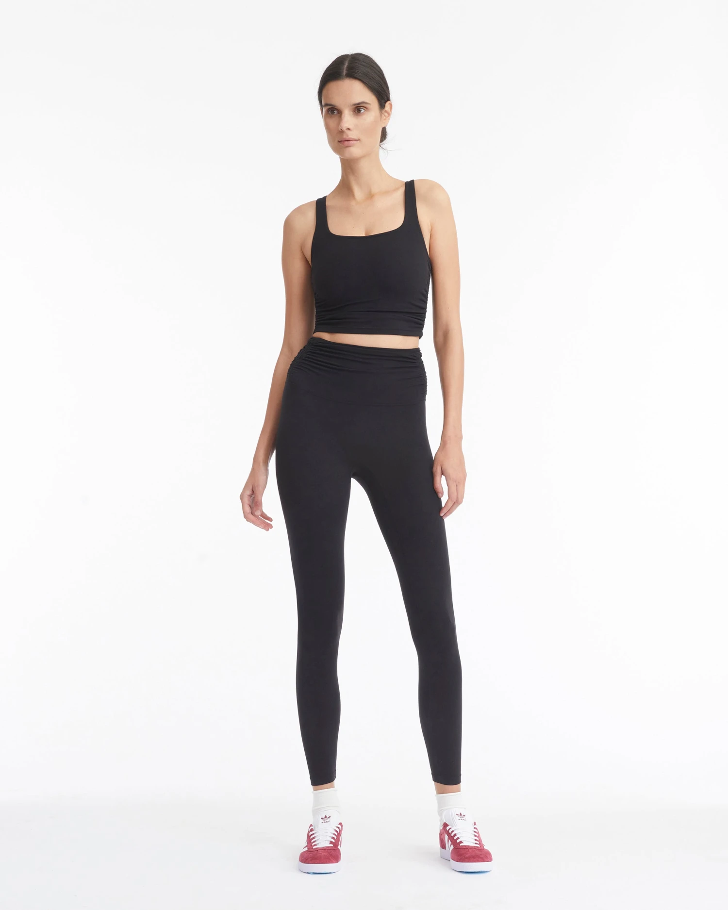 - High-waisted leggings featuring a super soft & delicate brushed fabric w/ ruched detail on the side