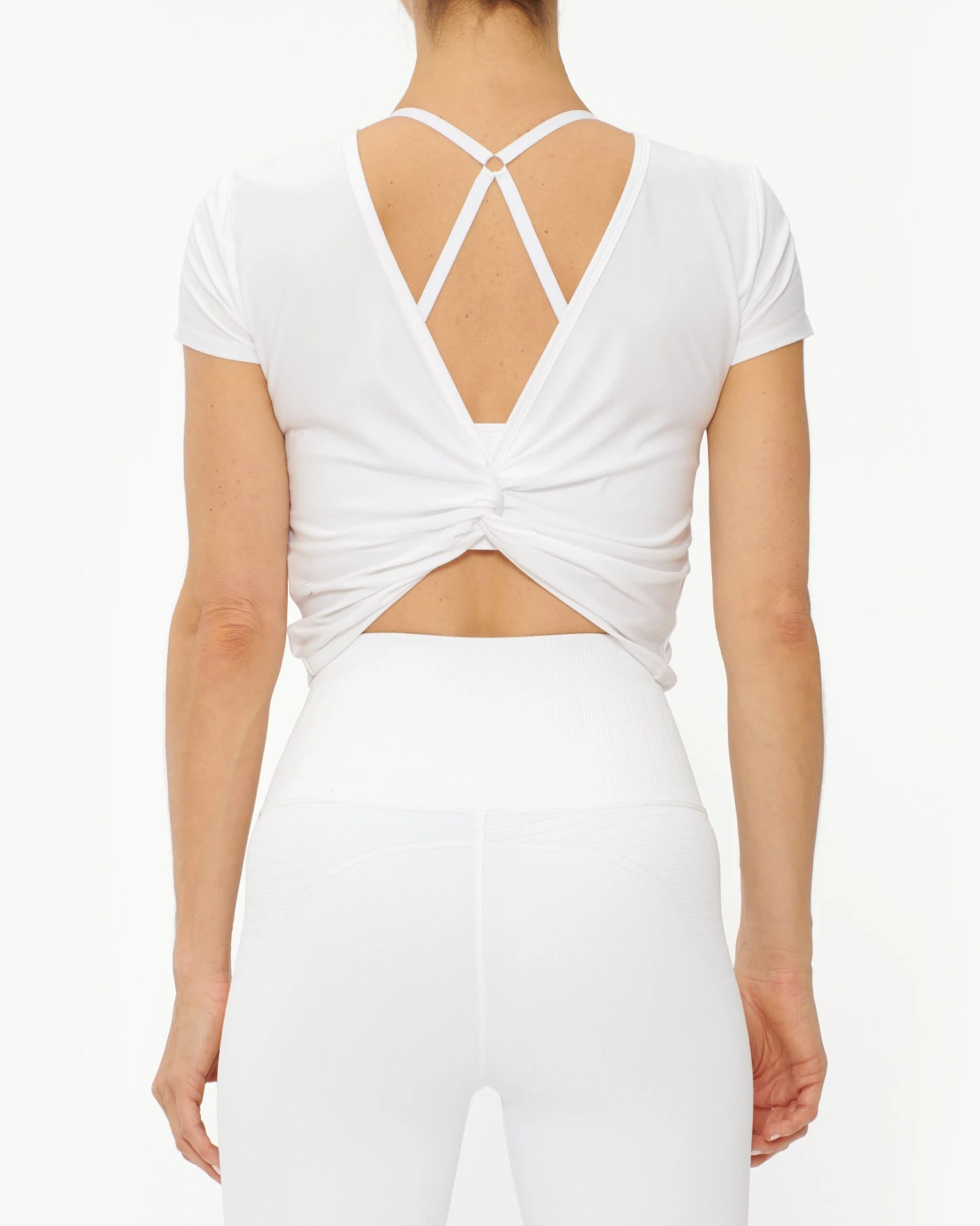 Sneaking in a workout before meeting friends for social plans? Wear this. Cropped length shows out and shows off with an unexpected twist: open back design with twist detail to show off your active bra, and makes classic jeans-and-tee outfits much more exciting.