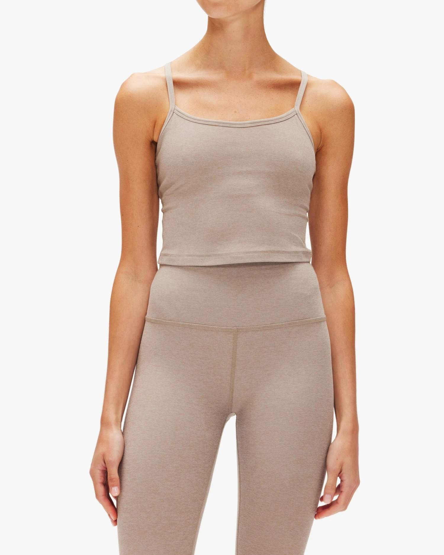 For the studio, everyday plans and beyond. Beyond Yoga’s bestselling slim racerback tank features a built-in shelf bra with medium support and a cropped silhouette designed to pair over your favorite high waisted leggings, jeans, you name it. Make it a set with matching leggings!