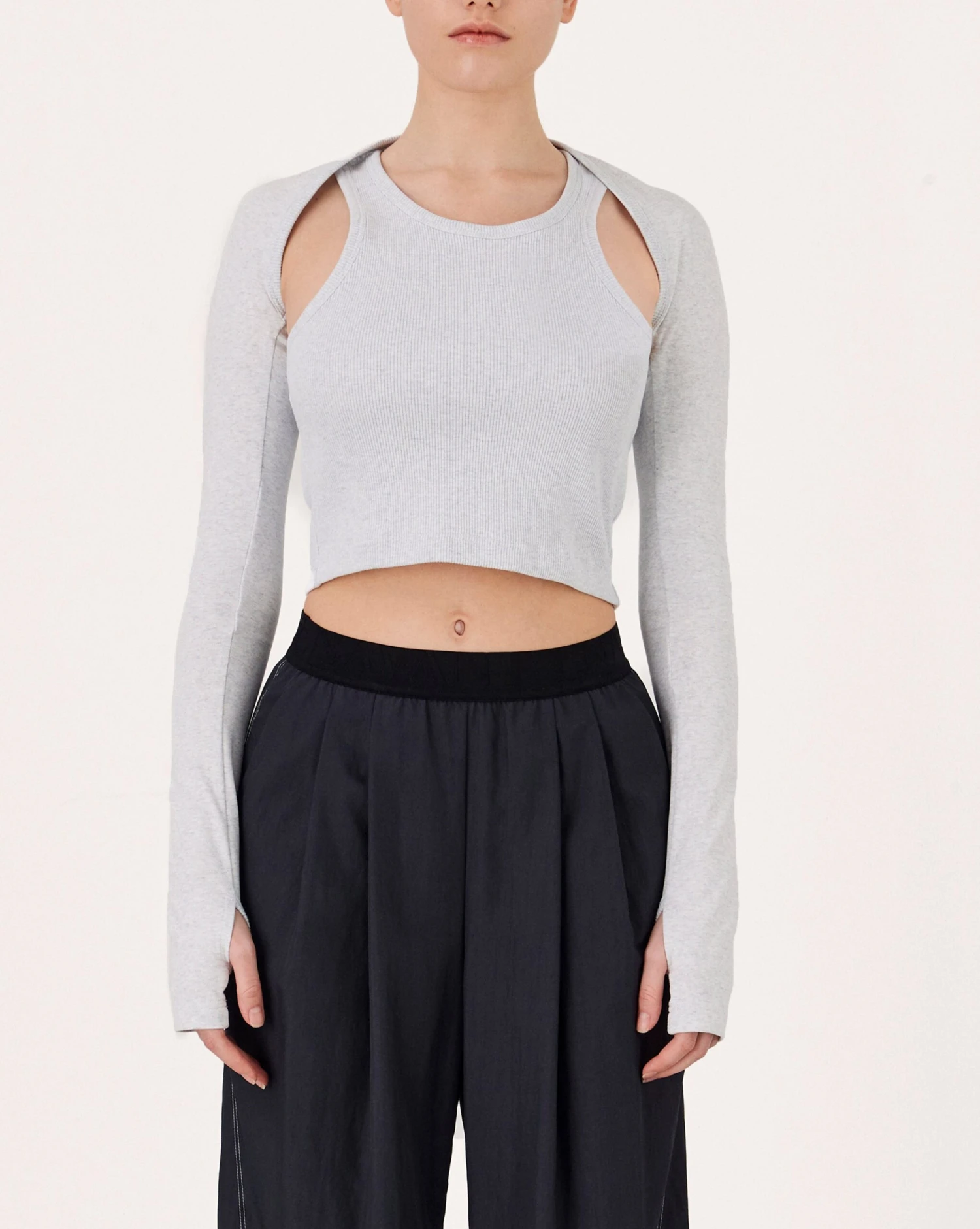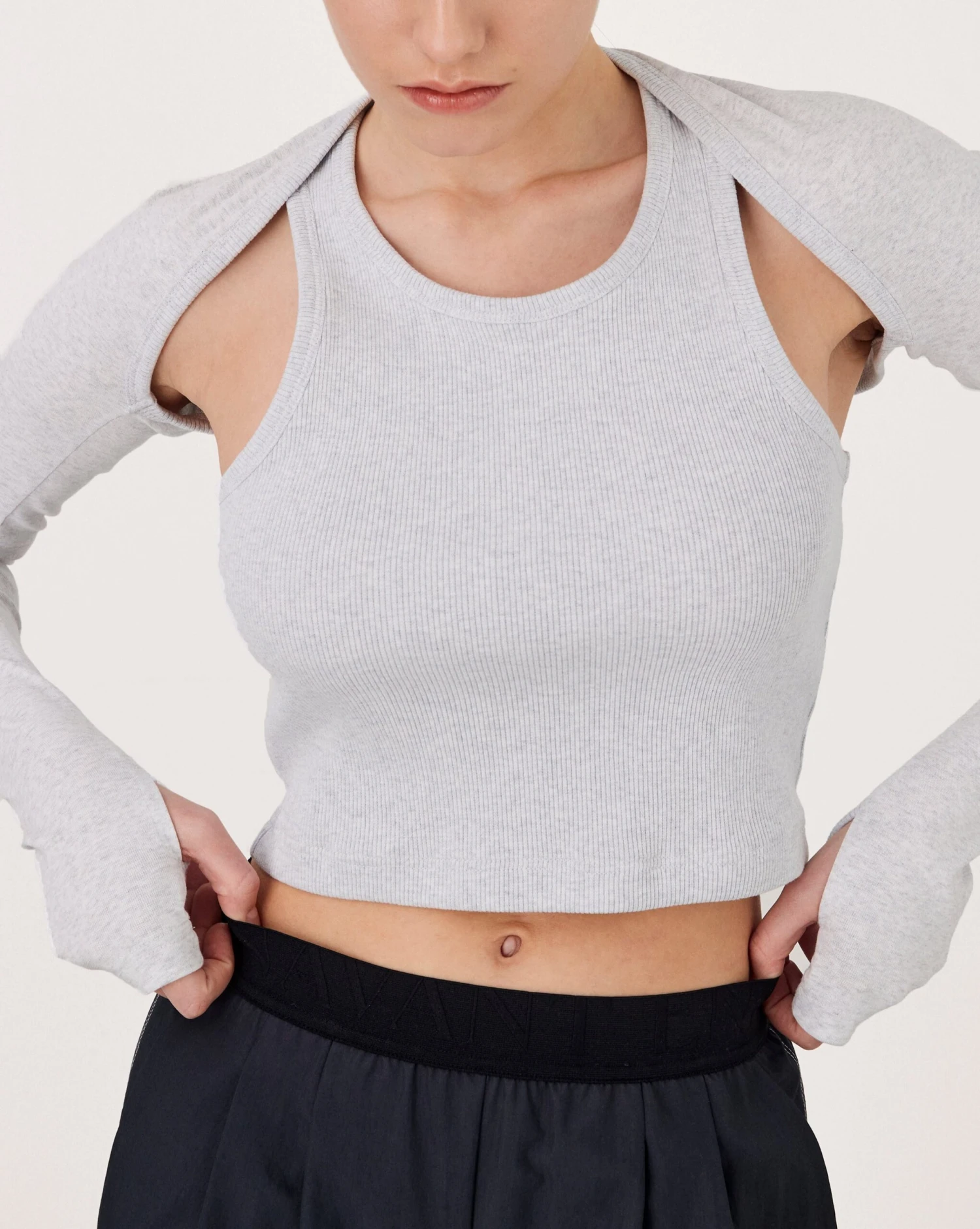 Spend your summer nights out in the city in this versatile, two-piece set. Wear the tank top and shrug together for a seamless look or switch things up and wear the pieces separately.