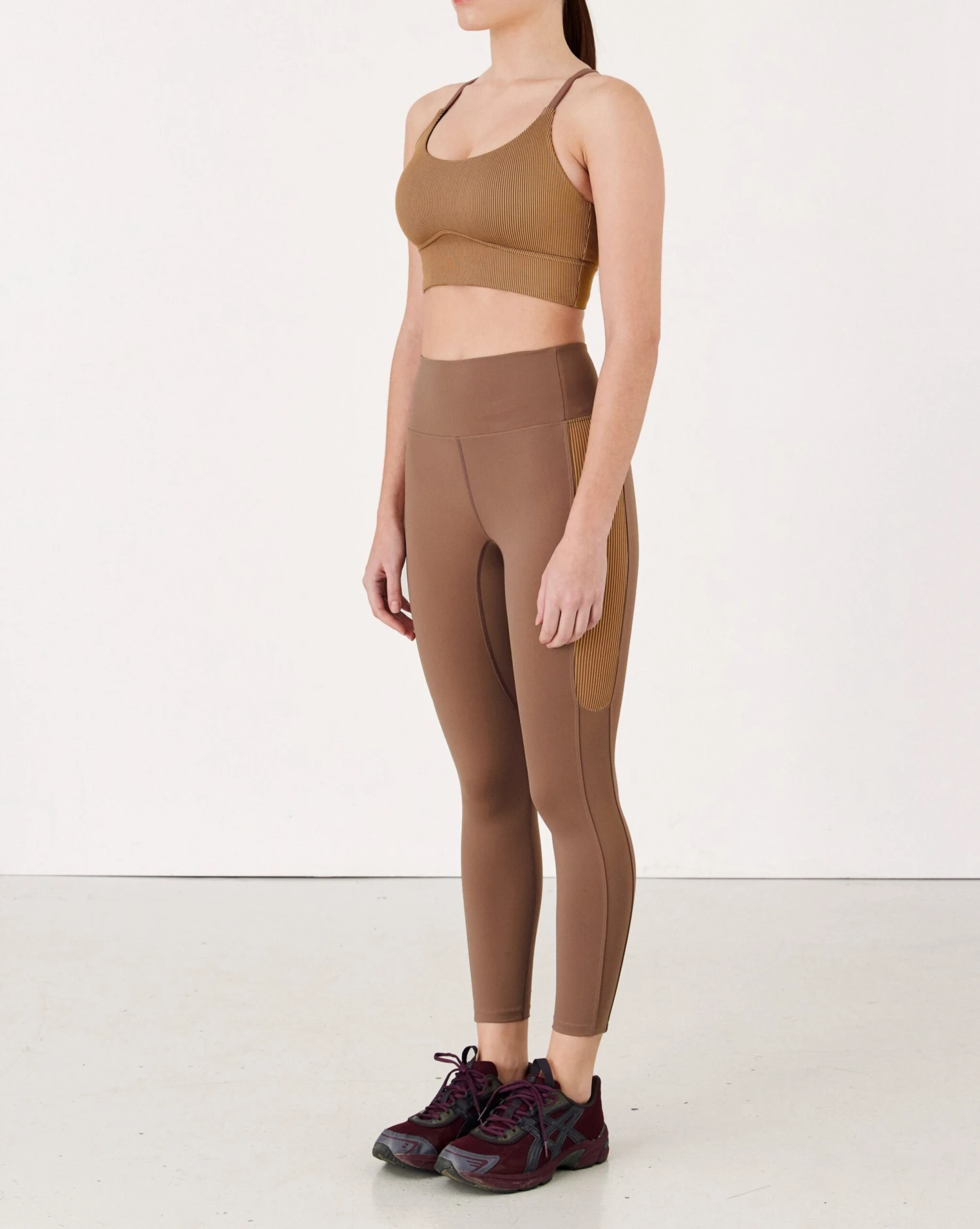 A compressive, sculpting legging fit for sweaty workout sessions and making a (subtle) statement at the gym. The Kaya Legging adds some flair to your active look with a set of flattering side panels fabricated from our signature two-toned ribbed material – which boasts a unique color-changing effect from different angles.