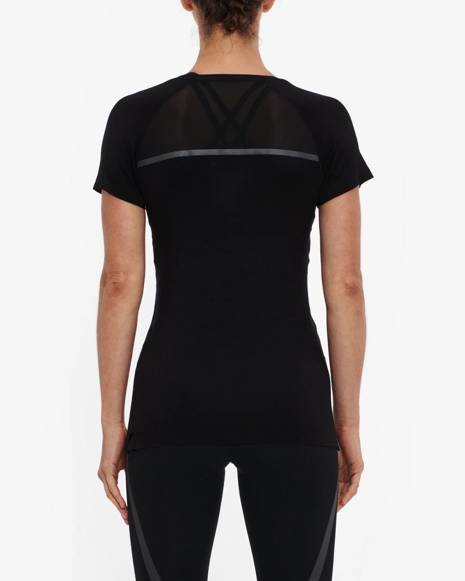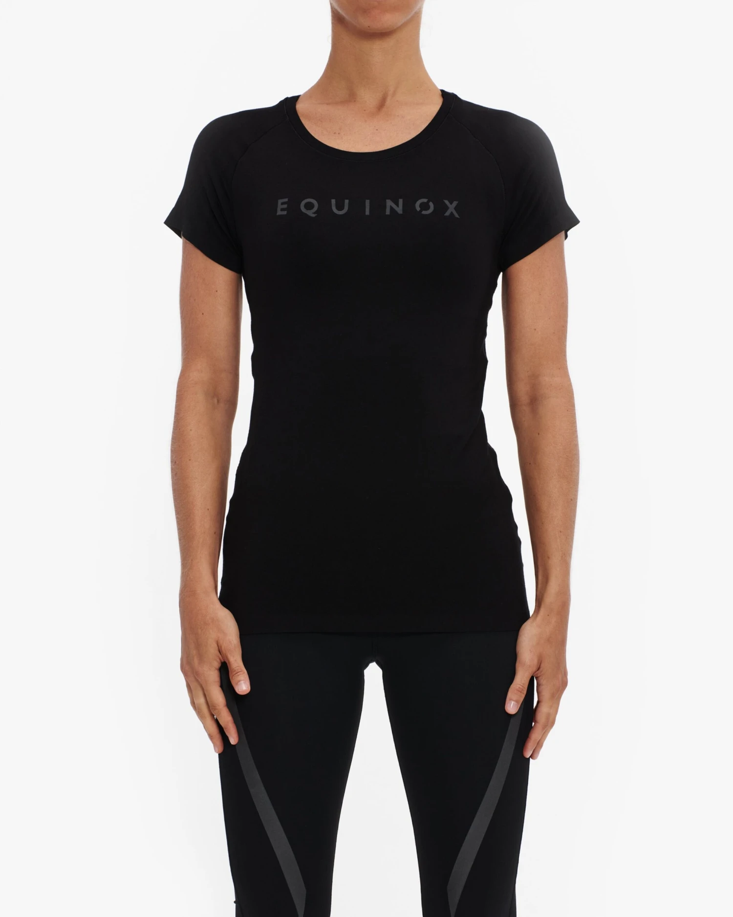 Our Equinox women’s performance tee is made from luxe Italian fabric and has all the properties you need for a true workout. It features breathable and quick dry fabrication, bonded hems, and welded side seams for added comfort and no chafing. The perforated back neck adds breathability, as well as vented side seams for ease of movement. Features a reflective Equinox logo across the chest.