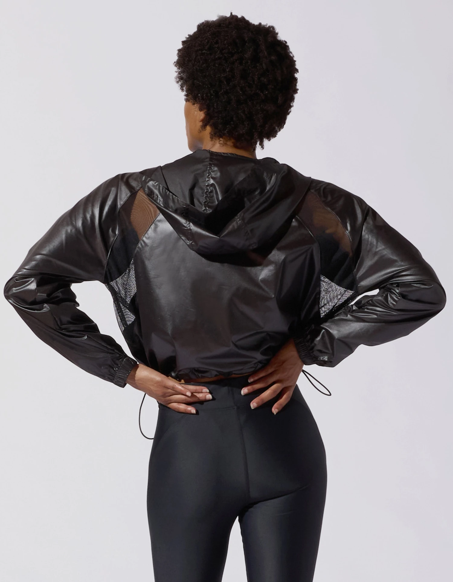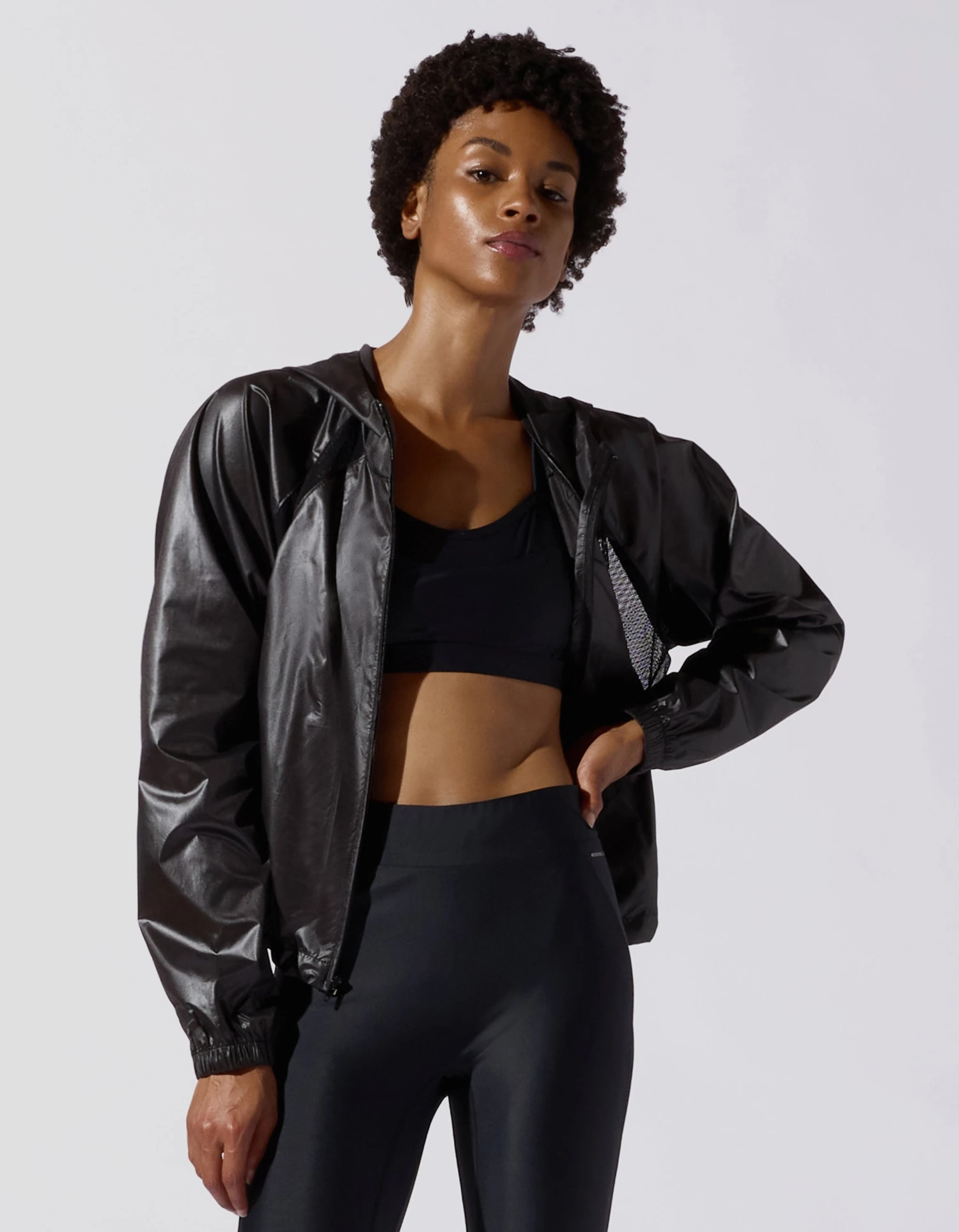 Zip up and breeze through the day in Heroine Sport’s sleek windbreaker glide Jacket. This lightweight layering piece will take you from the street to the studio and back again. With full zip and hood, it’s an adjustable waist, mesh panels, and pockets on both sides. Wear over just about anything.
