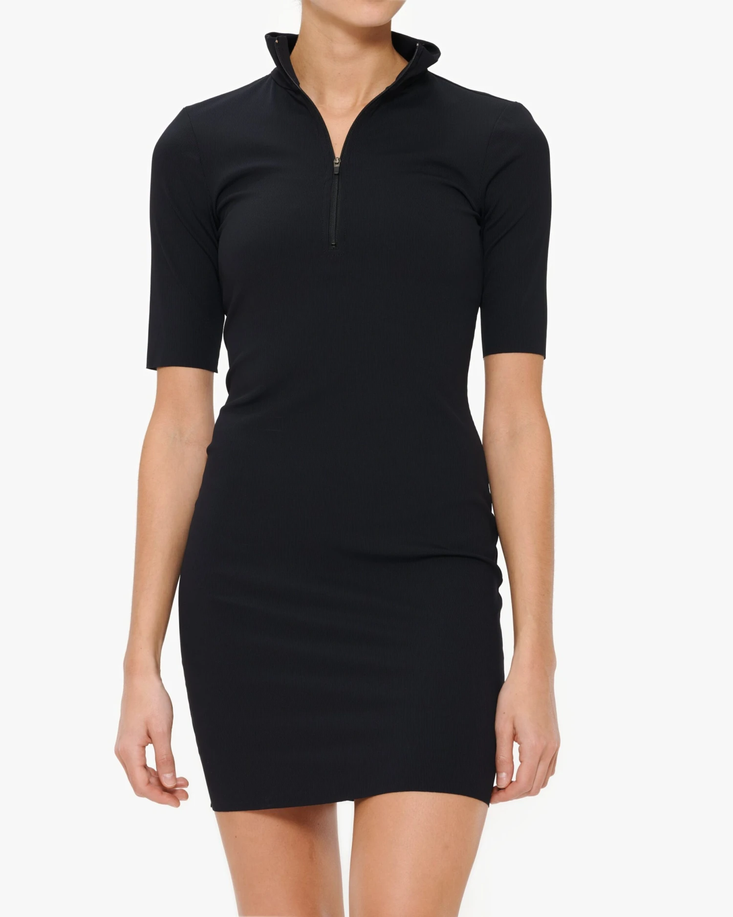 A sporty twist on the little black dress, this is done in a tight-knit ribbed fabric and features a zipped neck that can be worn open or closed. Minimal compression makes this dress ideal for everyday wear and low-impact workouts.