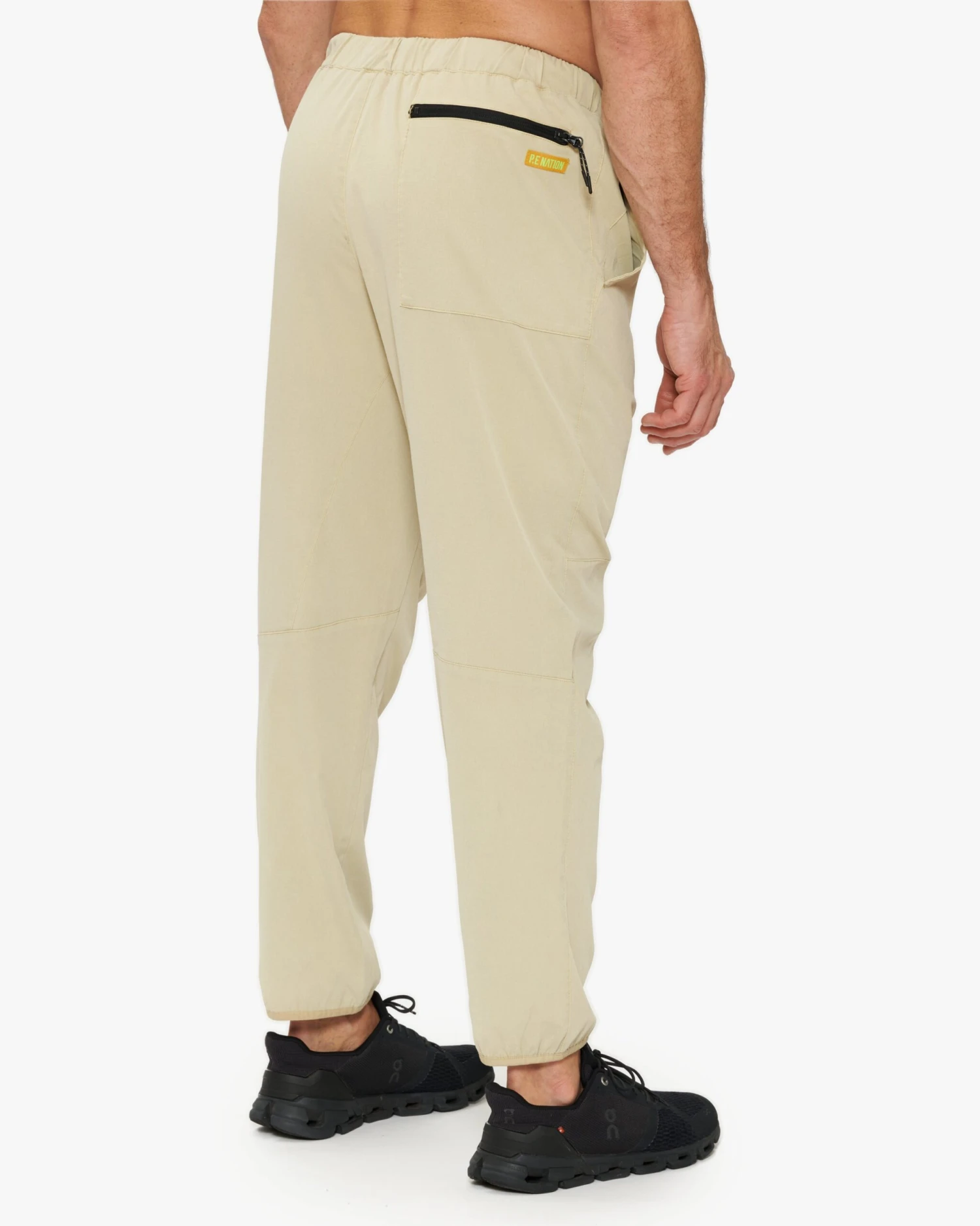 The Line Block Pant is a mid rise relaxed fit style in true men’s sizing. Cut from lightweight quick-dry spray fabrication in a matte finish, the Line Block features faux fly front and external drawcord at waist. Two front side seam pockets and one zipper patch pocket at back. A P.E Nation branded woven patch and woven P.E Nation logo pip feature at front, with P.E Nation silicon patch at back and branded hardware throughout.
