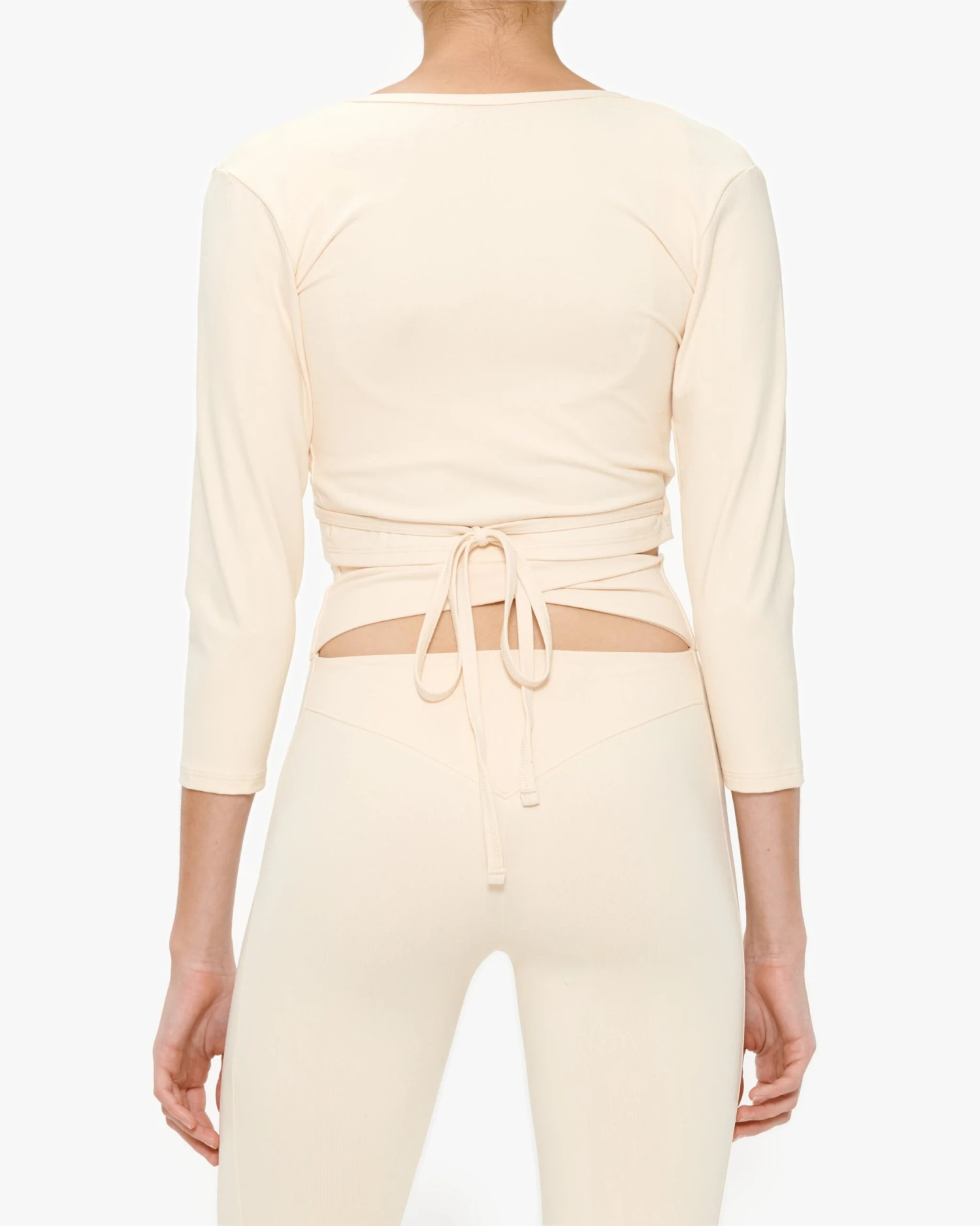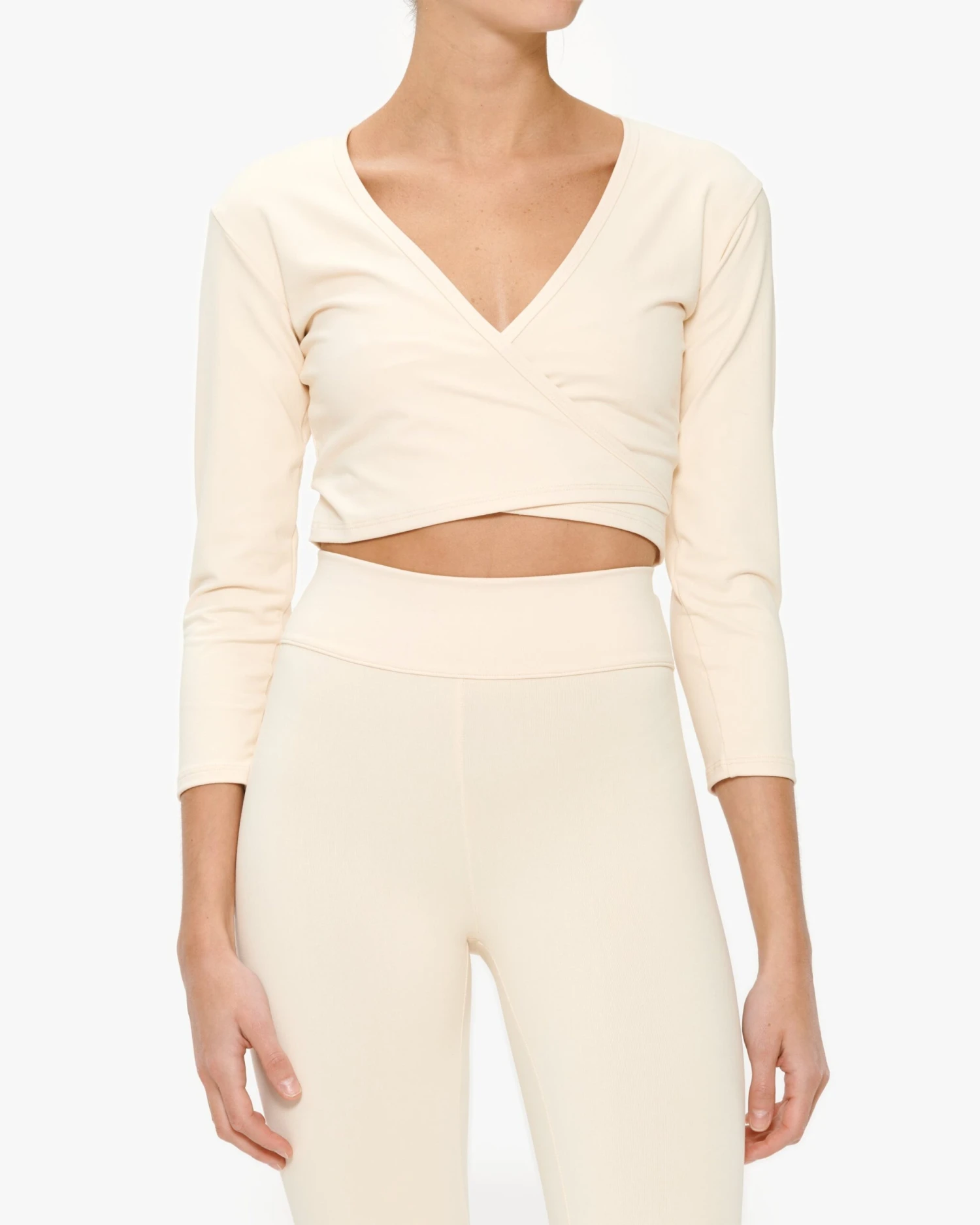 Easy-does-it in Live The Process’ ballet-inspired wrap piece—that ties at the waist and plunged in the neckline—with strong, chic holding power. That’s a wrap.