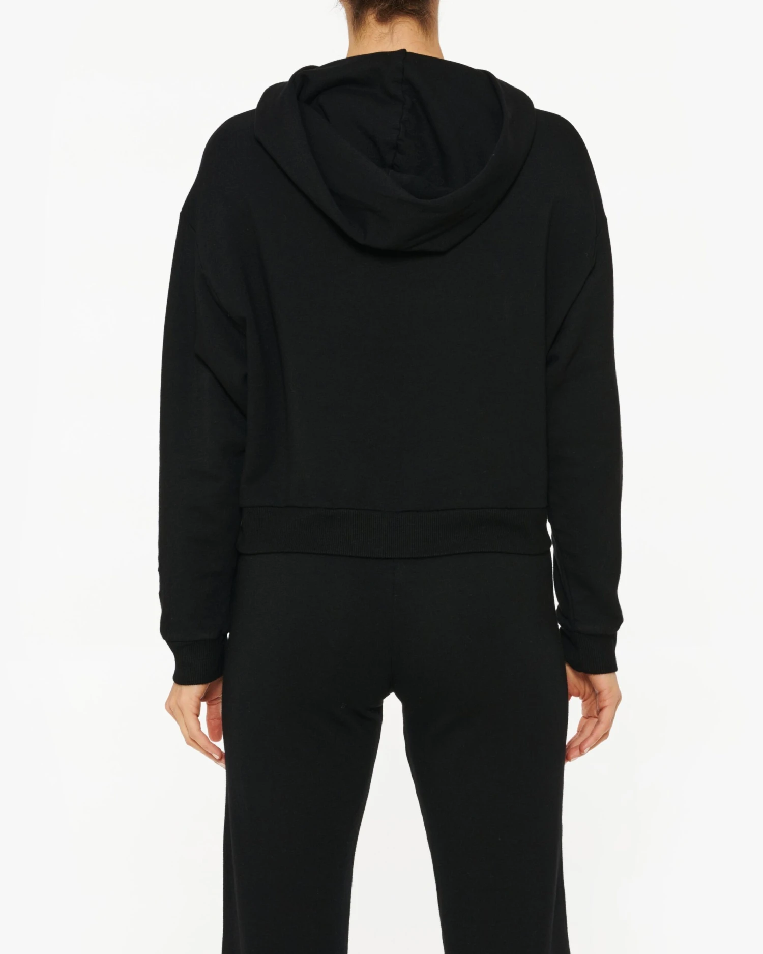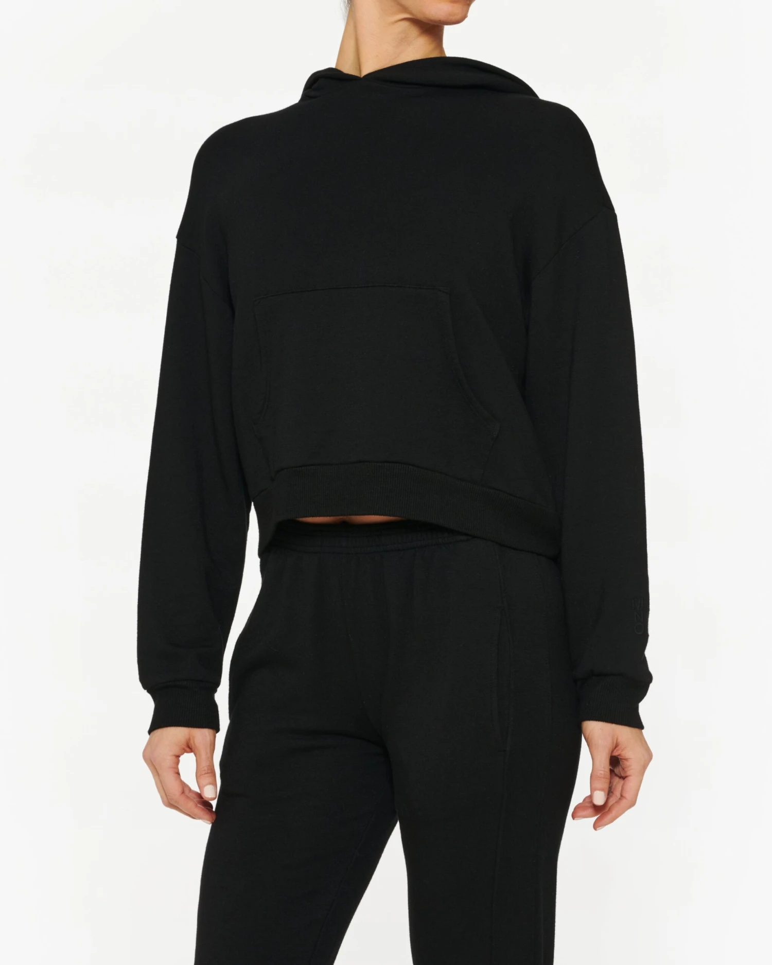 Monrow’s Supersoft Fleece Girlfriend Pullover is made with a super soft cotton-rayon blend. Easy fit, kangaroo pouch, and hood make this classic pullover endlessly cozy.