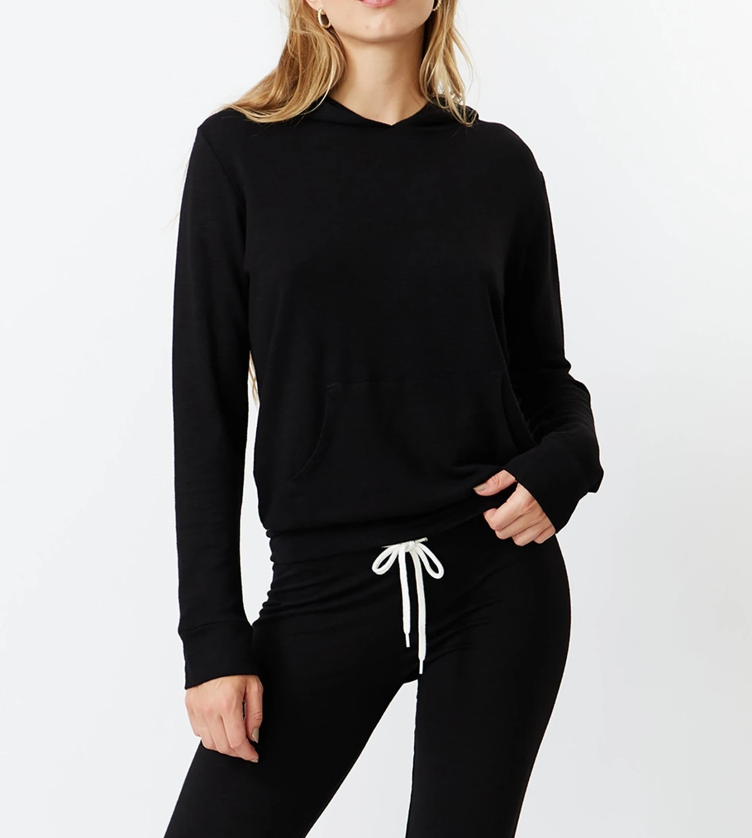 Made from Monrow’s Supersoft fabric, this pullover hoodie with kangaroo pocket is a classic. It’s perfect for all of your off-duty needs.
