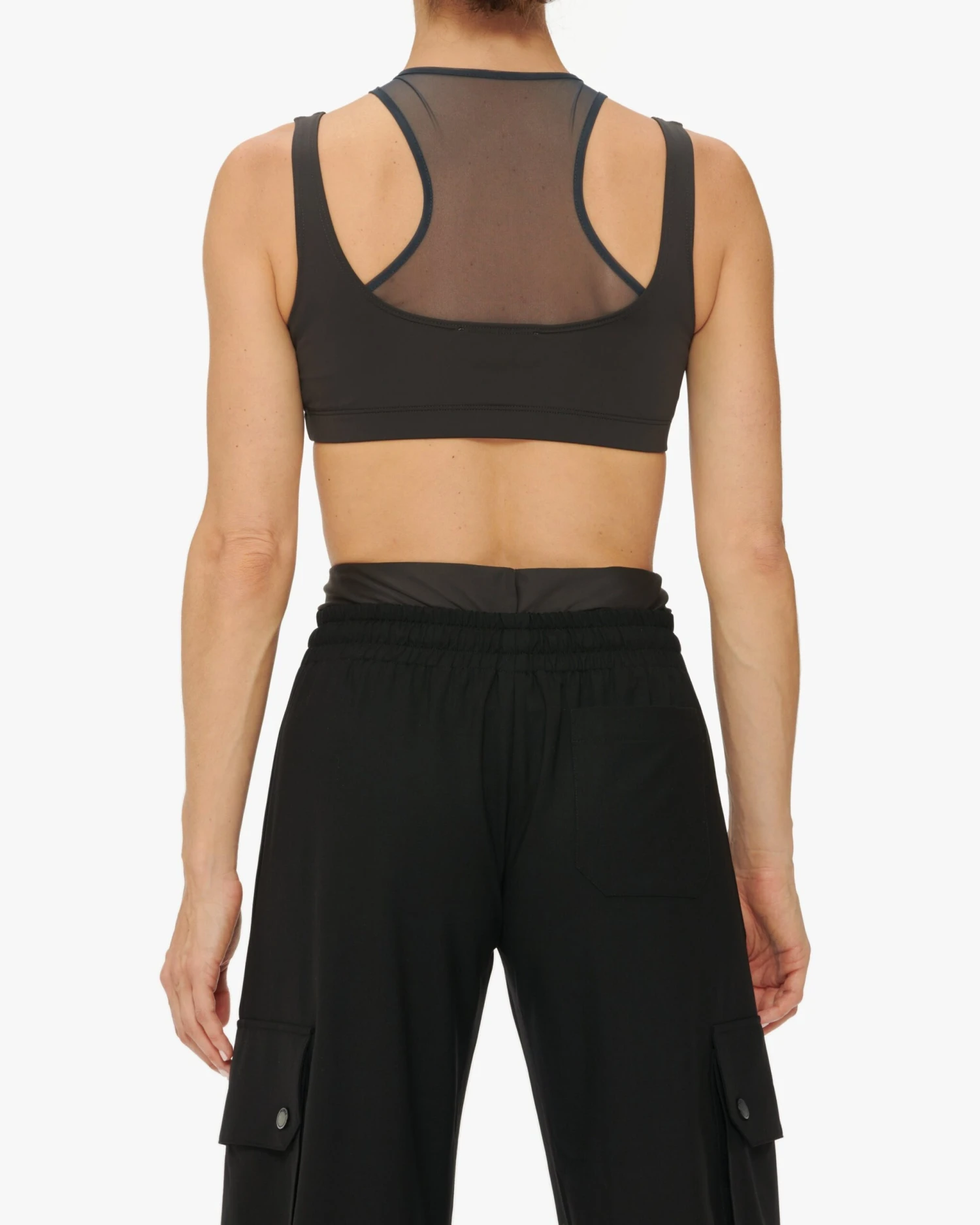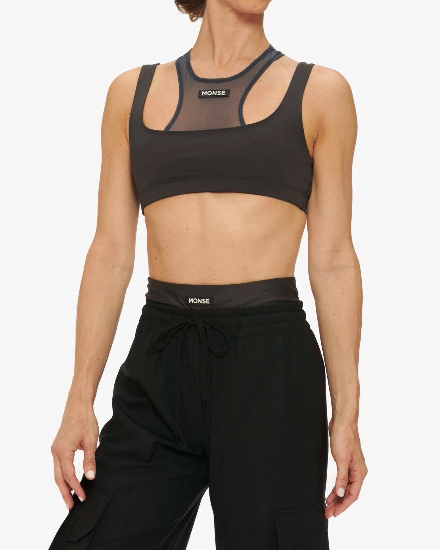 So athletic. The MONSE Double Layered Sports Bra is a form fitting activewear bra crafted from Vita Power Jersey that features 78% recycled polyamide made from fish net. Designed with a double-layered contrast bodice for added comfort, complete with a branded MONSE tag detail. It has non-adjustable wide straps for added support, perfect for mid to high-impact activities. Work it out with the MONSE Layer Short.
