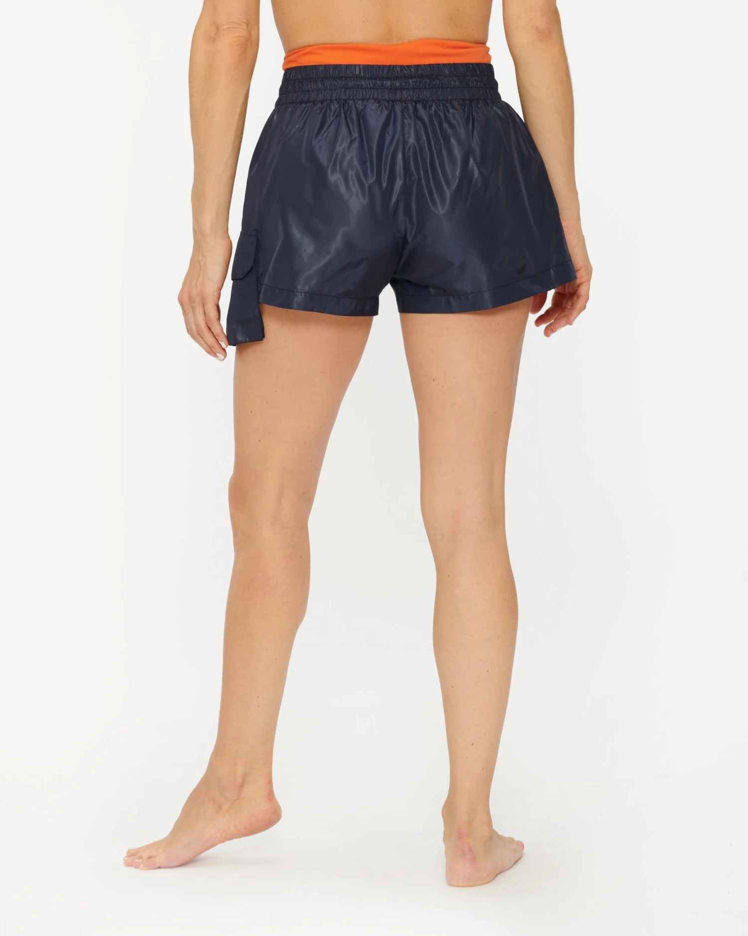 Show some leg. The MONSE Layered Short is fitted in the waist with a relaxed fitting leg. This style is crafted from both Poly Taffeta and Vita Power Jersey that features 78% recycled polyamide made from fish net. Designed with a high rise, elasticated double waistband with logo tag finish, slash side and frontal flap pockets, and branded toggles. Wear yours with our Striped Cowl Back Shirt.