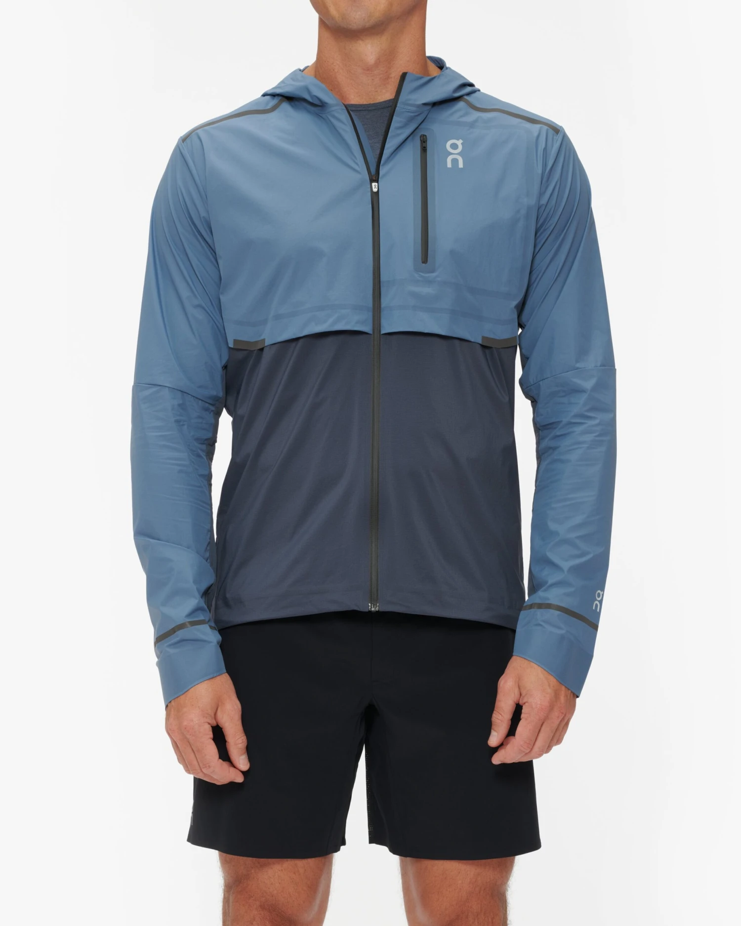 This lightweight running jacket offers protection and stretch in all the right places. Its engineered hood can be neatly adjusted for perfect fit and field of vision. Upper-body protection, a multifunction pack-me pocket and a weight-saving ripstop material, all fused together into the perfect companion for a wild run in wind and rain.