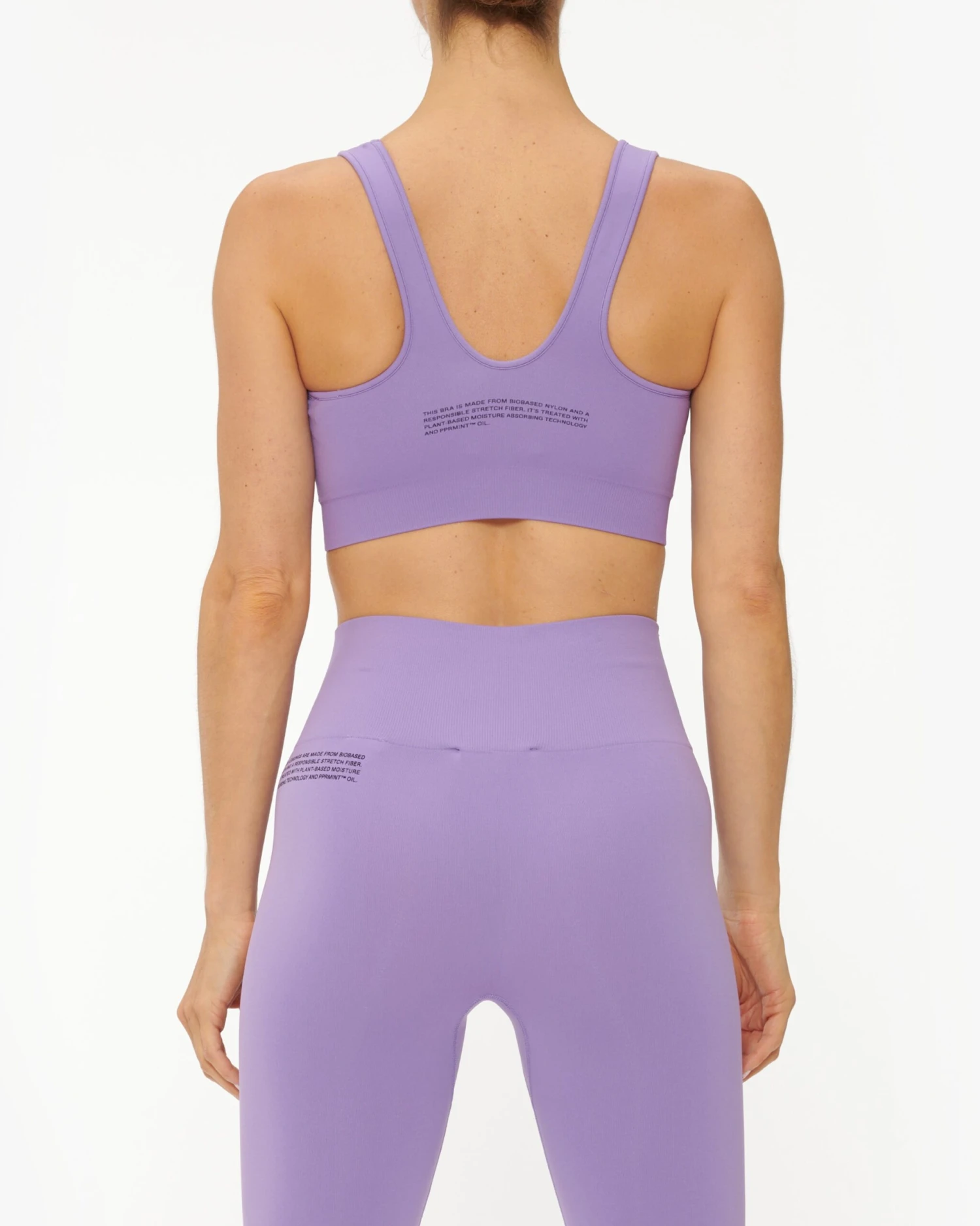 This scoop neck sports bra is made from a specially formulated nylon that has the ability to biodegrade in a shorter space of time when disposed of in oxygen-poor environments. It has a unique stitch perforation for breathability and is treated with Biowick®, a plant-based treatment that absorbs unwanted sweat and peppermint oil (Pprmint™) for its anti-odor properties.