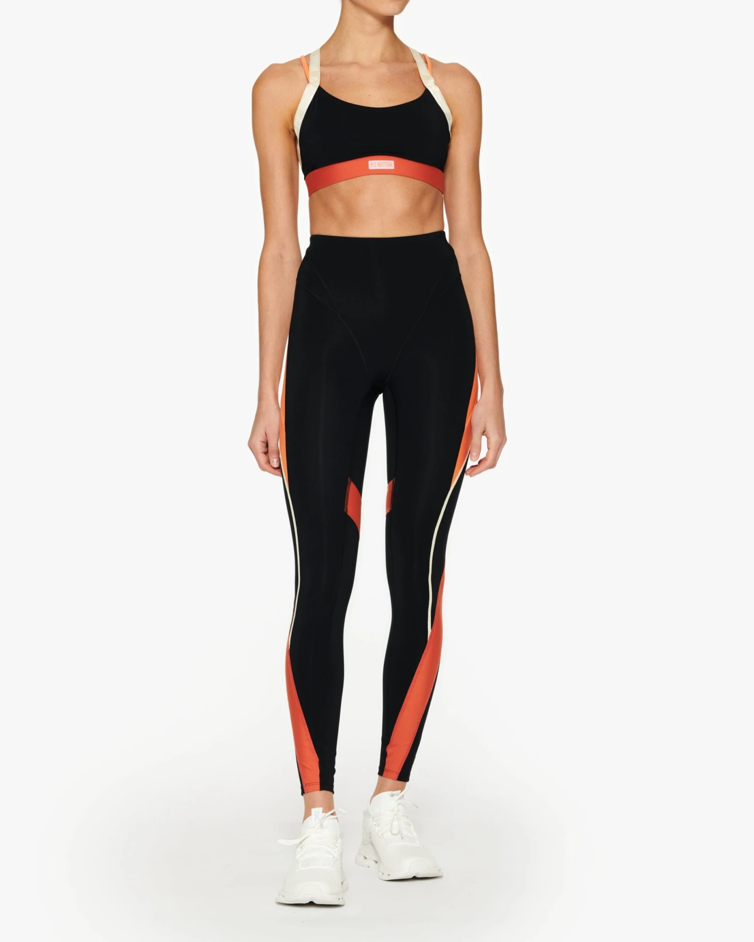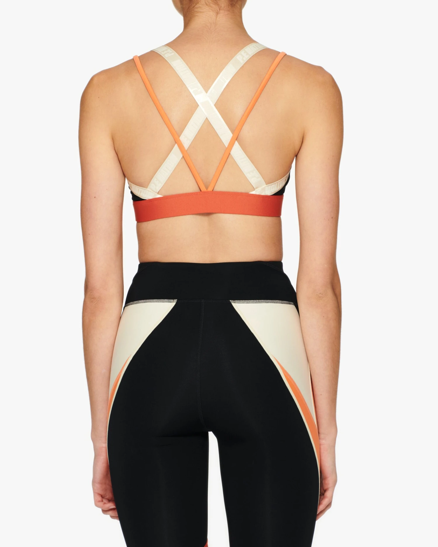 STRAPPY SPORTS BRA, P.E NATION JACQUARD ELASTIC STRAPS WITH CONTRAST COLOUR STRAP. CONTRAST ENCASED ELASTIC HEMBAND, P.E NATION HEAT PRESS PATCH AT FRONT. MADE IN A TECHNICAL, COMPRESSIVE, PERFORMANCE FABRICATION. DESIGNED FOR MID-HIGH IMPACT ACTIVITY/ LEISURE/ GYM.