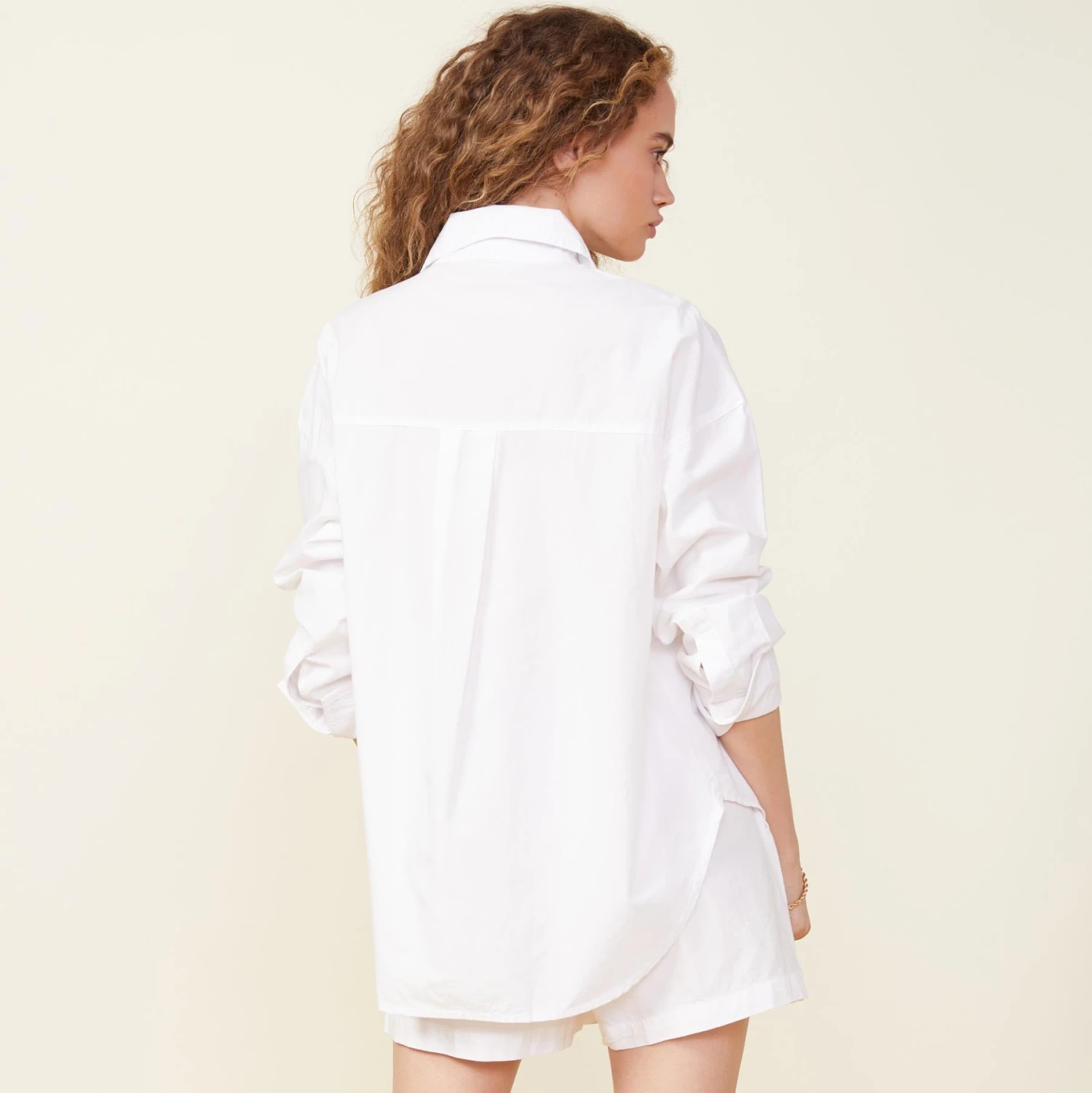 - Monrow knows a thing or two about what wardrobe staples should feel like, and they might have just completed your collection. Casual yet sophisticated, Monrow’s crisp Poplin button-down top is exactly what we know you’ve been looking for. With a structured yet relaxed fit, this top is the perfect match for just about anything. Pair with the matching Poplin Pants, Poplin Shorts, or a slight front tuck into your favorite pair of jeans.