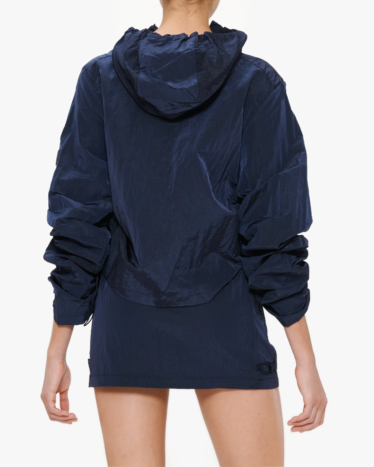 Pullover W is a design from the Garments concept – a collection of easy-wear staples to complete any Rains look. The piece is characterized by its wider fitting, cropped silhouette, and features a fitted hood with center neck string adjustments, and shoulder panels. The design’s body and extra-long sleeves can be shortened via string adjustments.