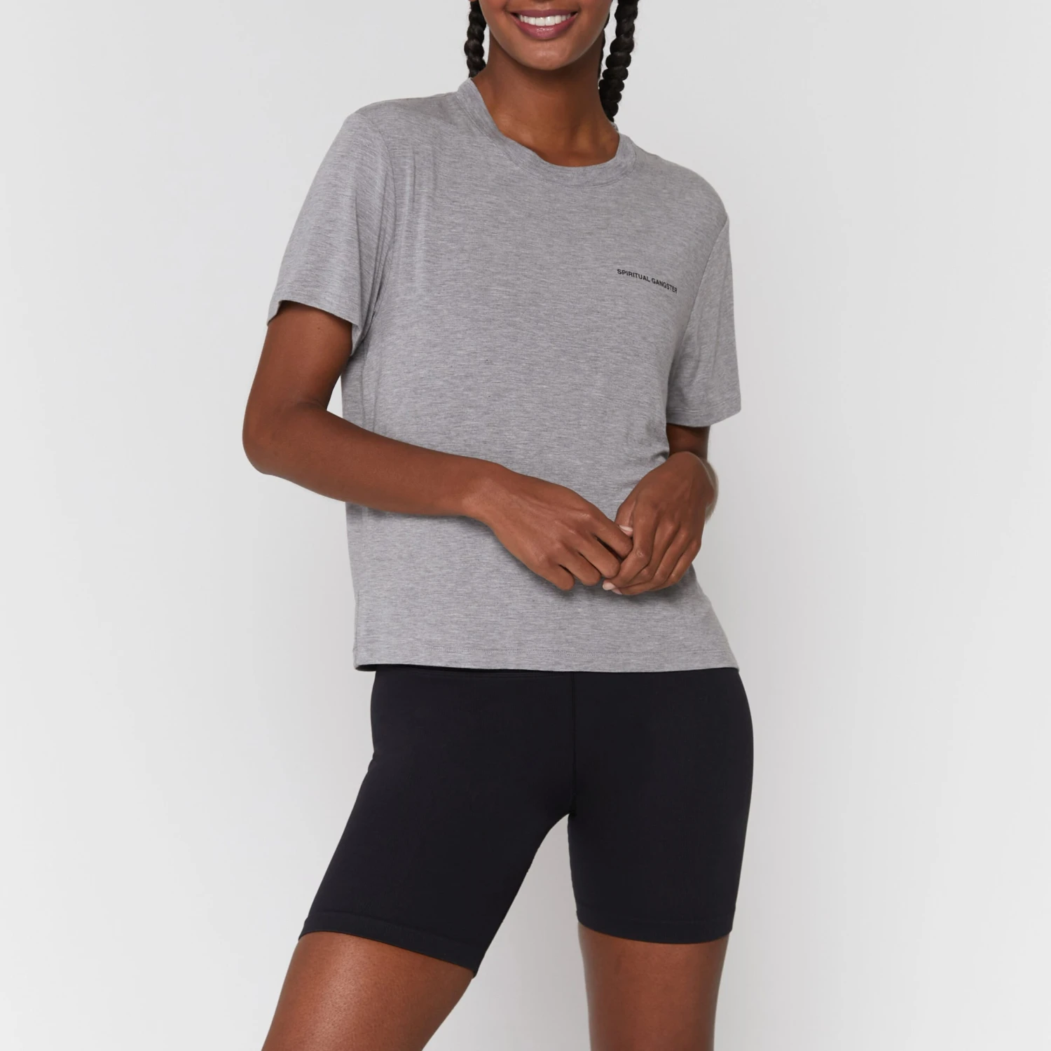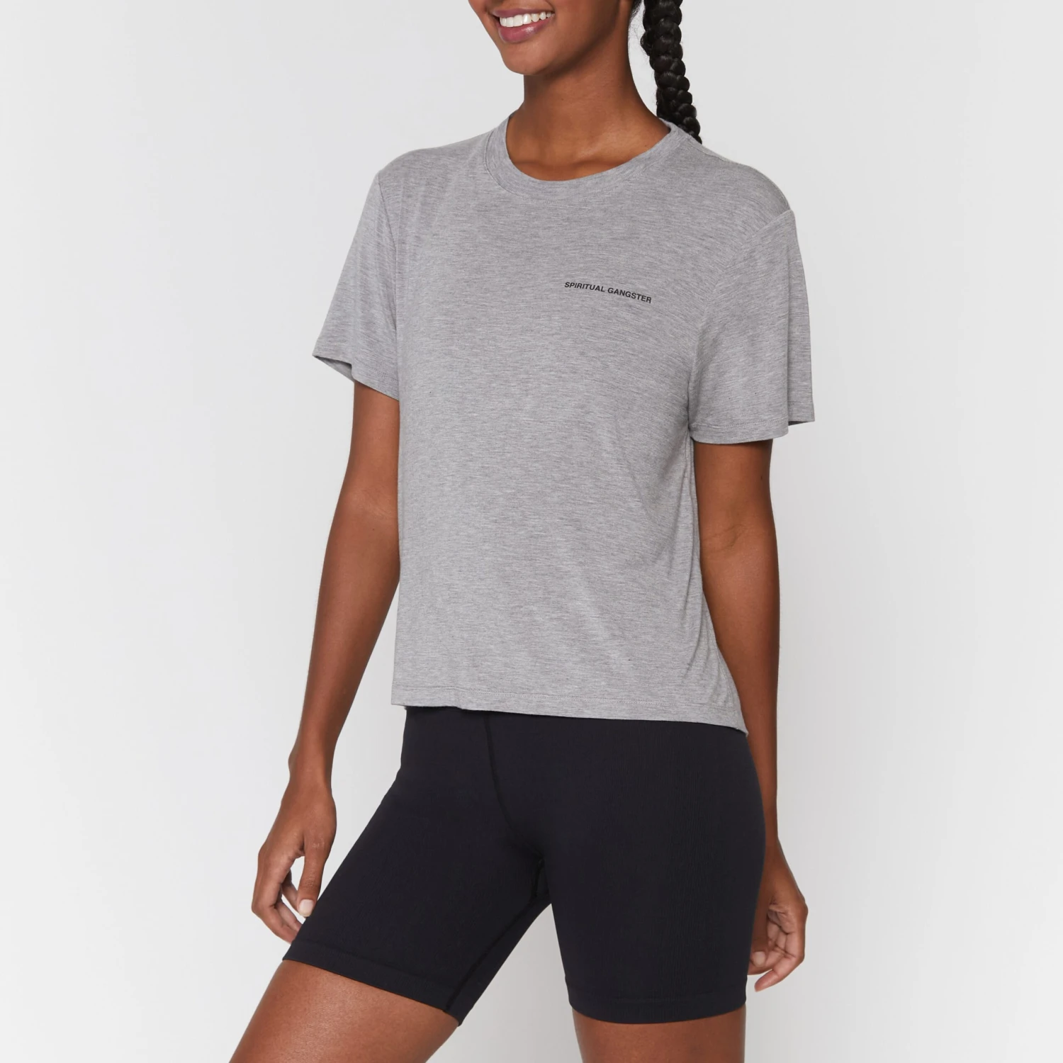 They often say don’t look back, but in this case you definitely should. Spiritual Gangster’s new Open Back Short Sleeve Tee in a drapey, eco-conscious bamboo blend jersey is lofty, cool to the touch and is sure to turn heads in the studio and on the street.