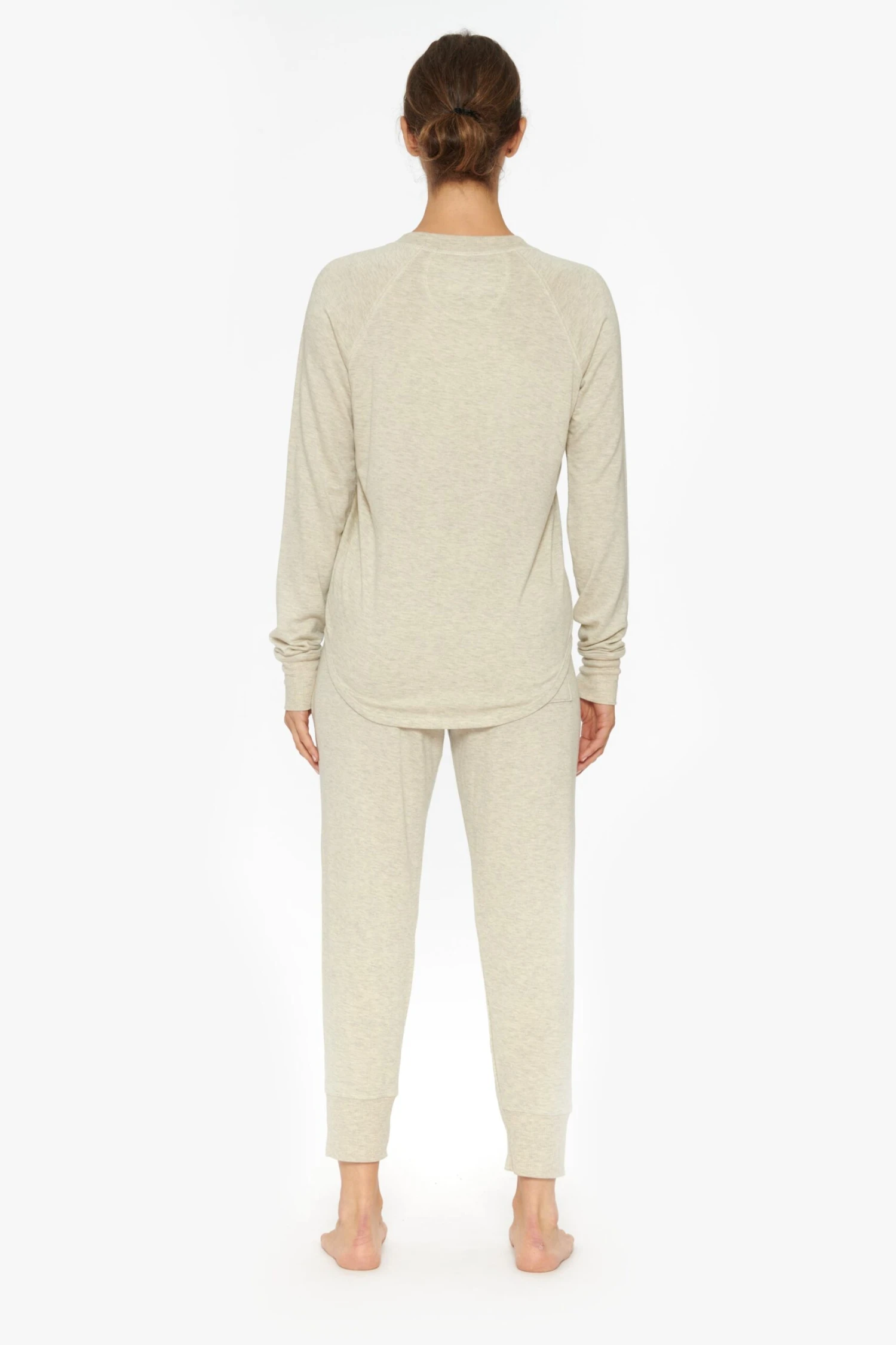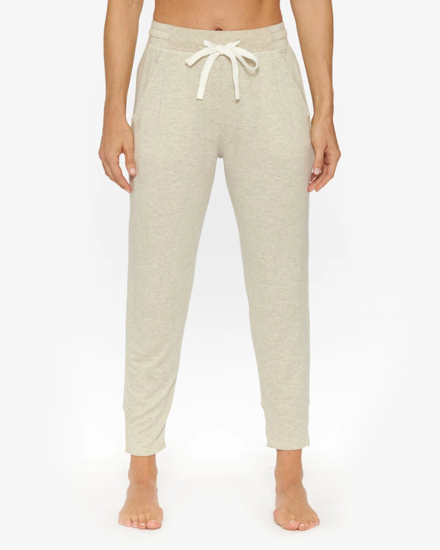 The Reena is a 7/8 length, relaxed fit sweatpant featuring a cropped hem and elastic waist with drawcord. Made from super soft ultra luxe fleece for an effortless fit and pure comfort.