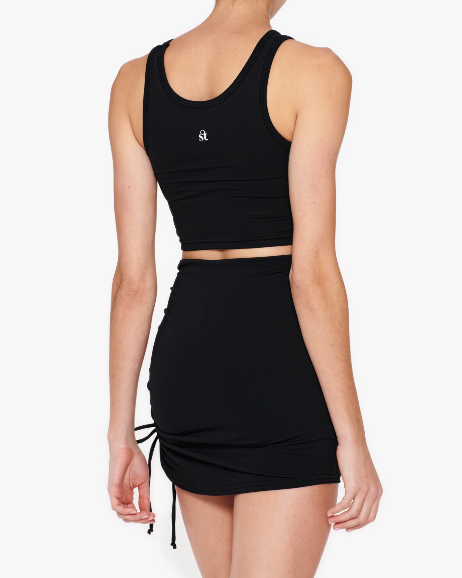 Meet your perfect crop top, the Blockbuster. This high-neck crop top is finished with a flattering cinch detail along the front and a built-in shelf bra.