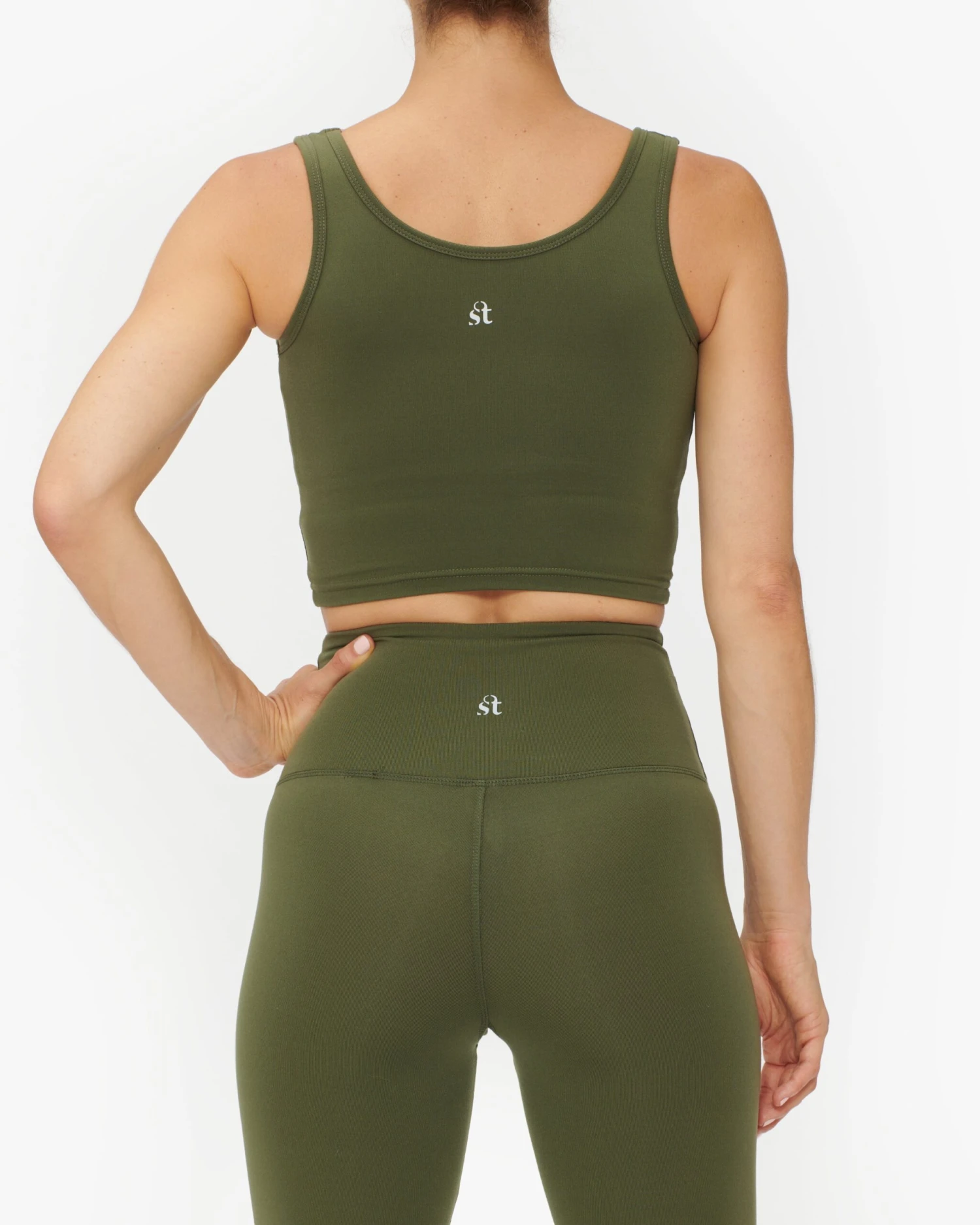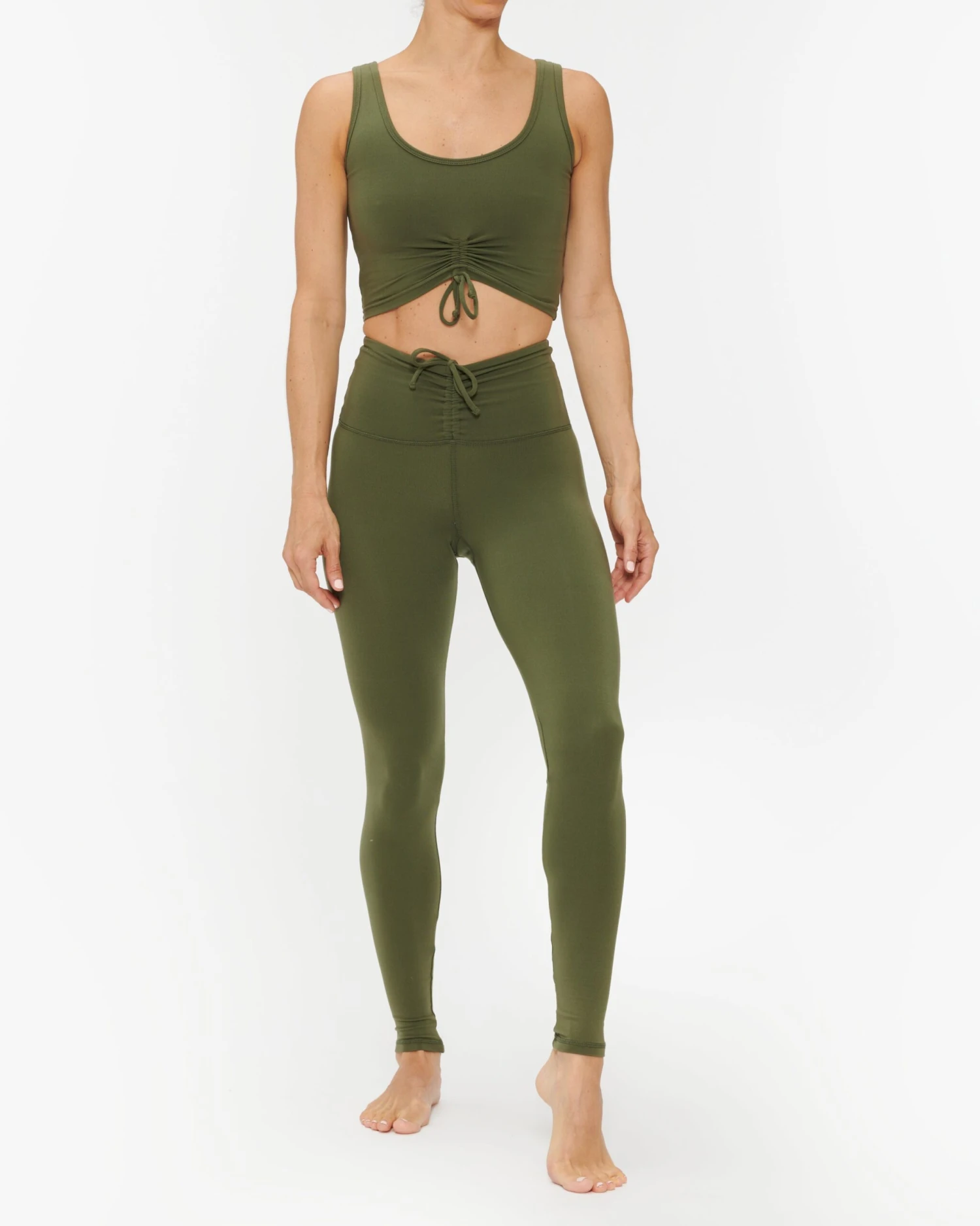 Meet a new addition to the Strut This lineup! The Avalon Bra is a scoop neck crop top with an adjustable ruching drawstring, a perfect pair to The Lovers Ankle or on its own as a staple piece.