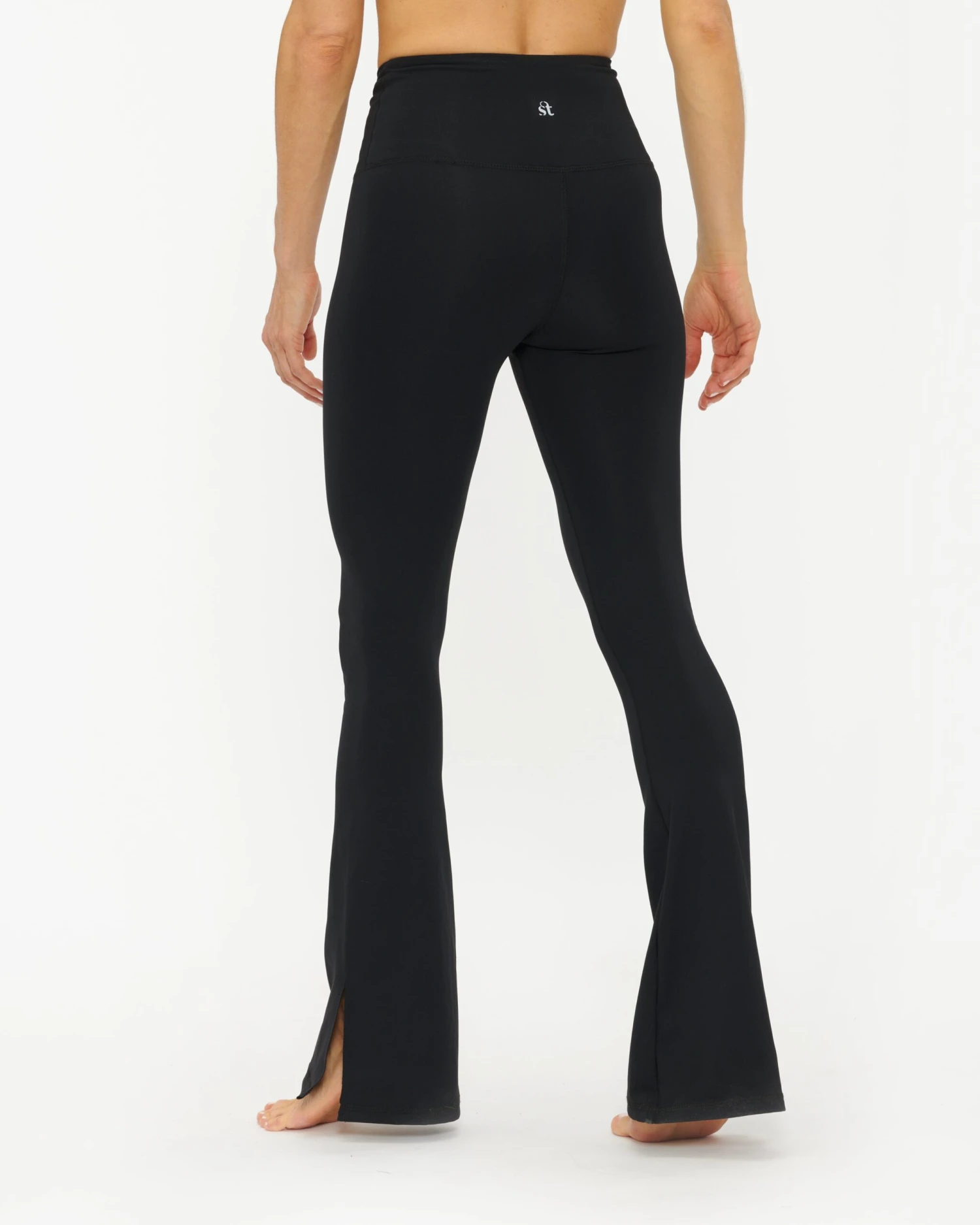 Meet the Finn! This high rise flair pant features adjustable ruching drawstrings at the waistband and side slits.