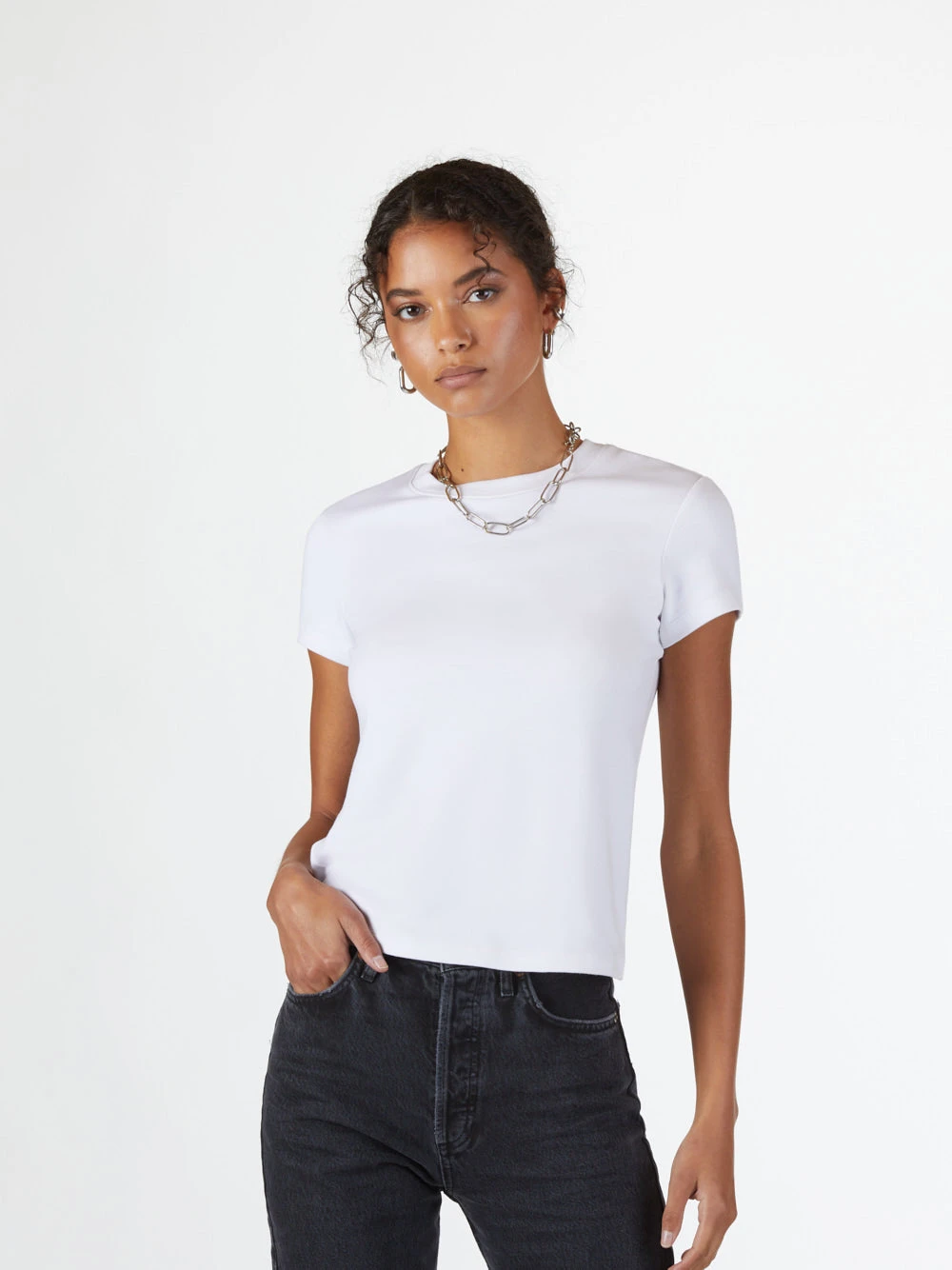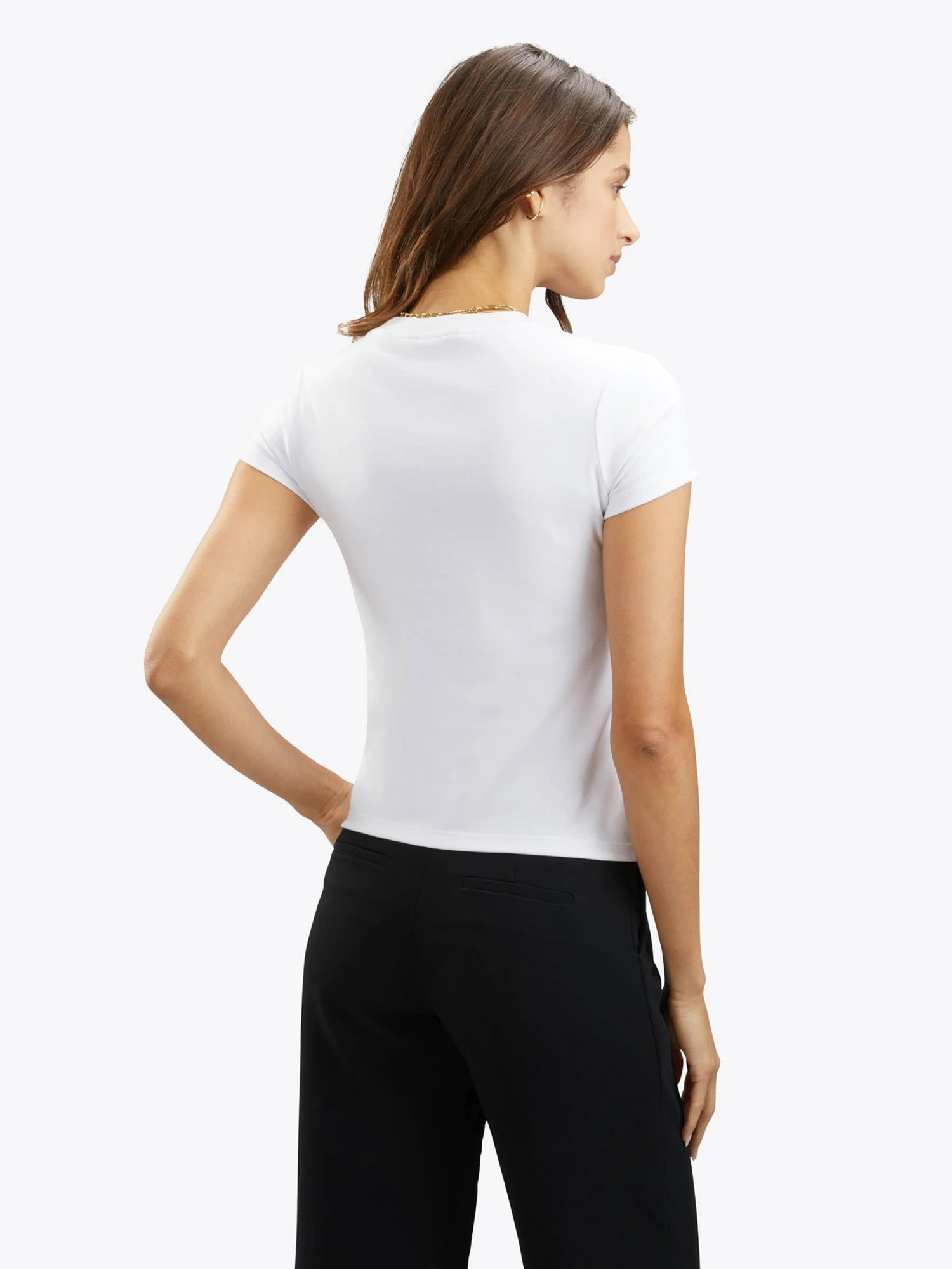 Cool and confident. For the days you need to be effortlessly polished. A slim fit tee that perfectly pairs with your favorite trouser or straight denim. Style it up with jewelry and a strappy heel or keep it casual with a chunky sneaker and dad hat.