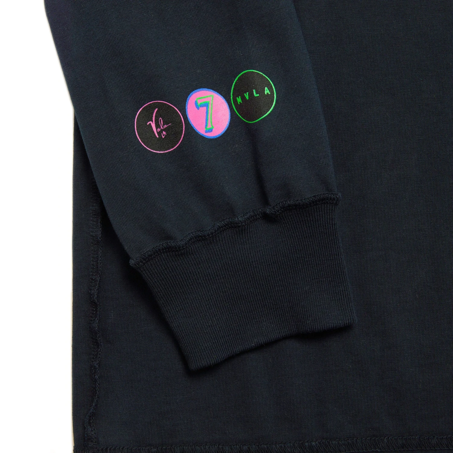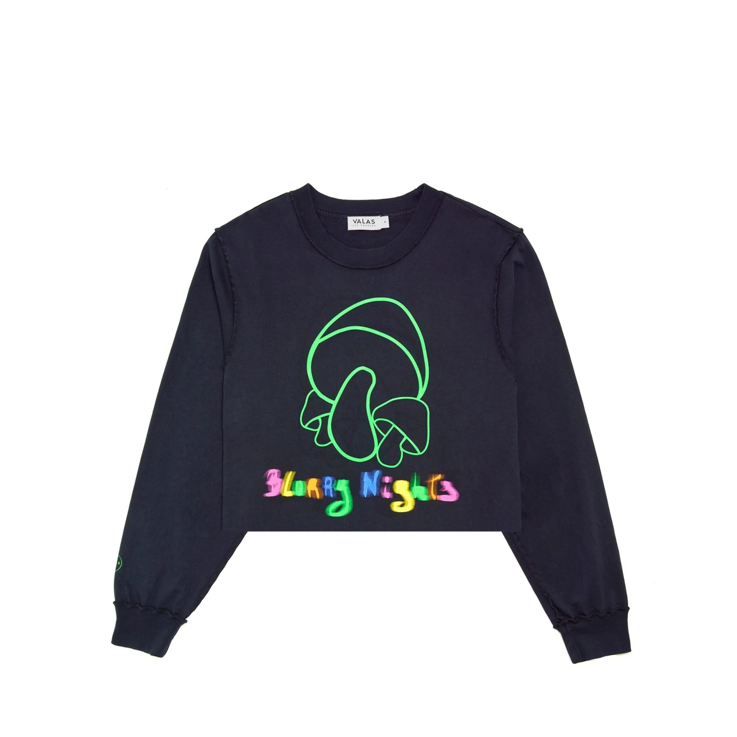 Introducing Valas’ MVLA collab, Cropped Blurry Nights Tee, crafted from a prewashed cotton fabric turned inside out and embellished with multiple screen-print artworks. The intricate design is the result of the collab with MVLA, a style-driven team behind some of the hottest athletes’ looks. Cut and sewn in Los Angeles, this tee is of the highest quality and made to grab attention.