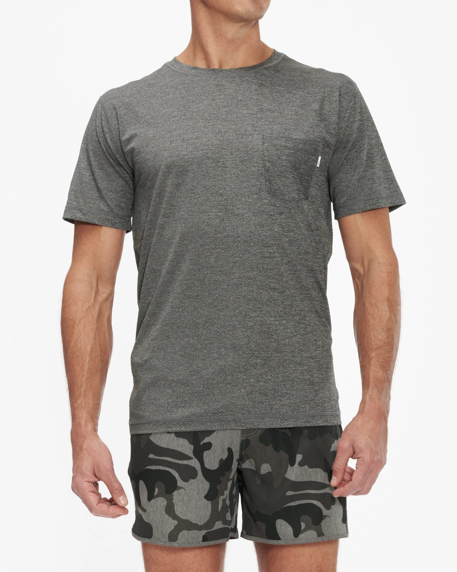 The Tradewind Performance Tee is the most technical tee in the lineup, with perforated performance knit, UPF and quick-drying capabilities. Light and breathable, the flatlock seams and chest pocket allow for easy transition into everyday life.
