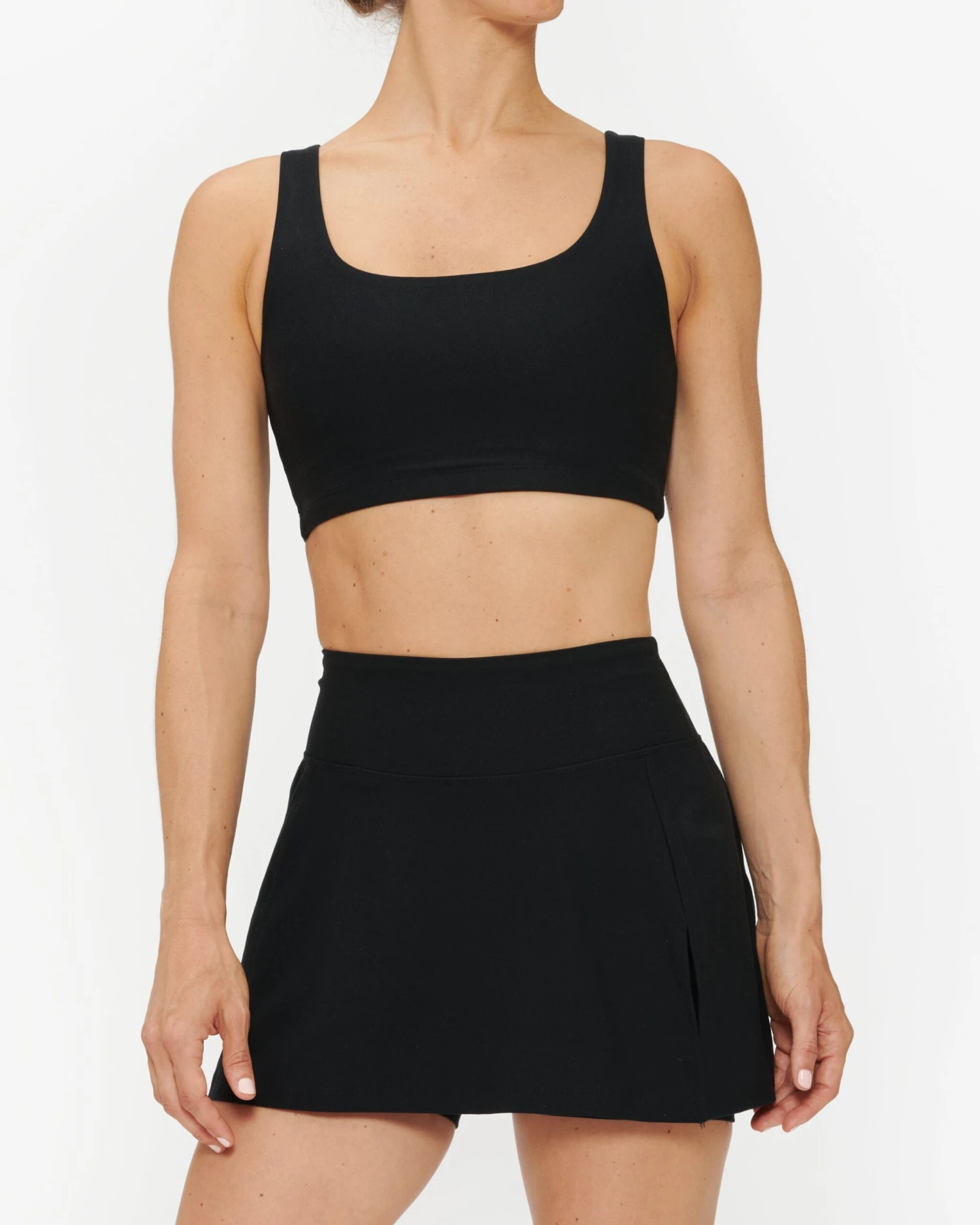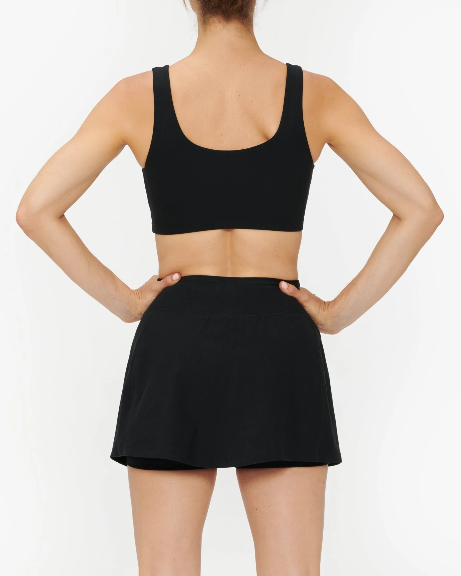 With its crop top length and thick tank straps, the Ballet Bralette will keep you on your toes with its versatility. Lined throughout with a ¾” elastic along the bottom for support. Made with Active Stretch Jersey.