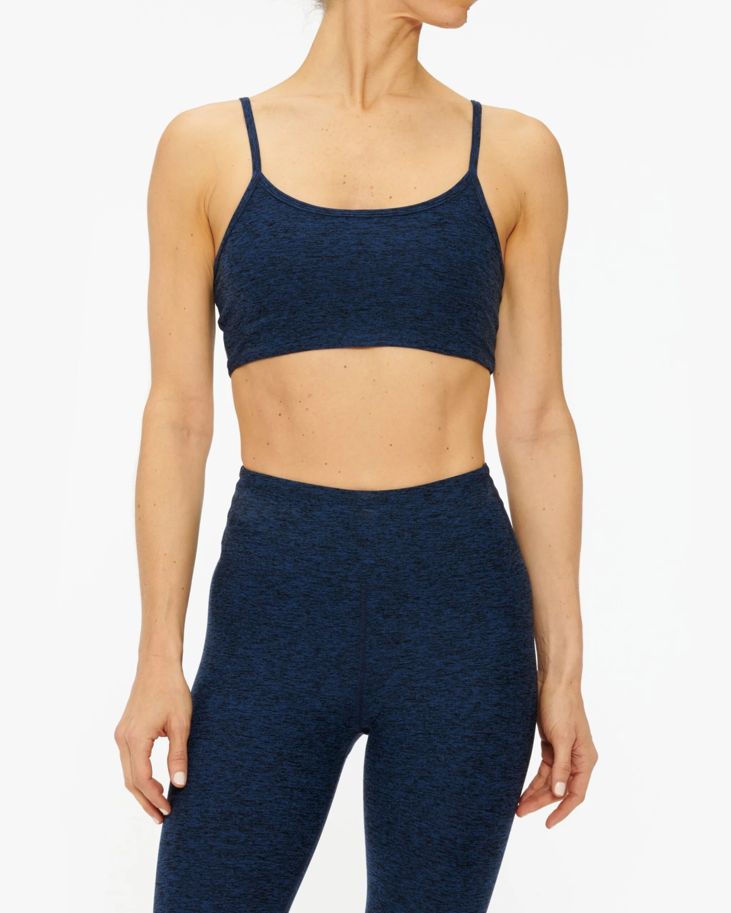 Classic bralette shape with spaghetti straps for a touch of soft femininity for low impact. Made in the brand’s Stretch Active.
